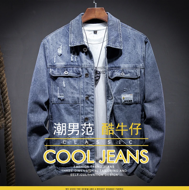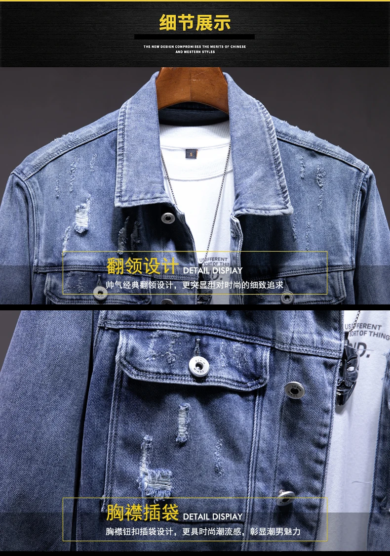 High Quality Mens Cotton Jeans Hole Jacket Denim Jacket Men