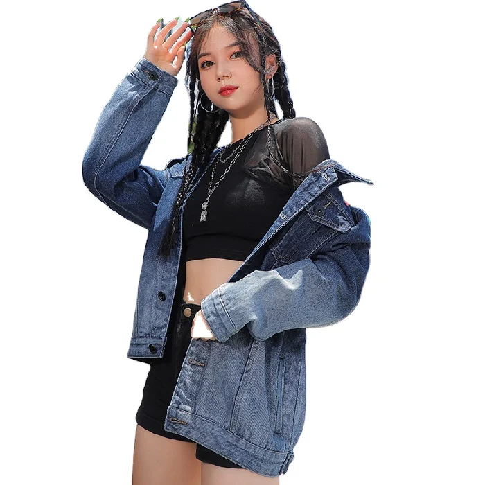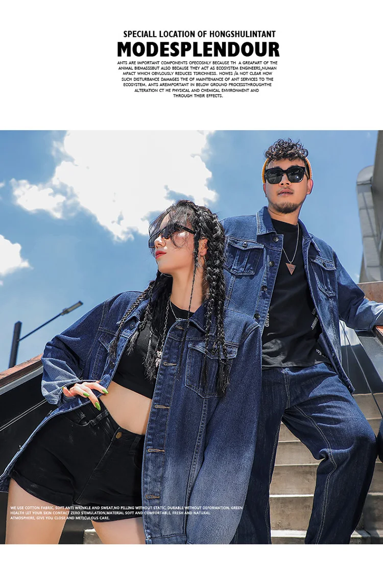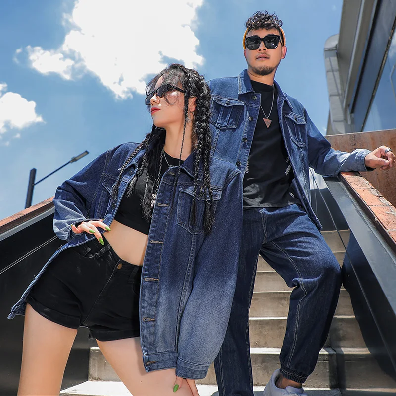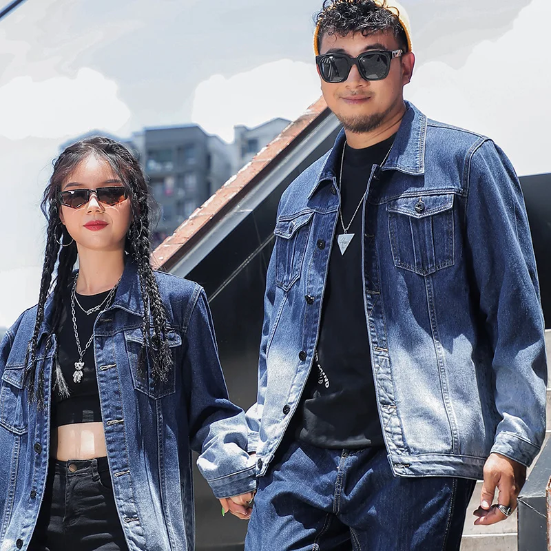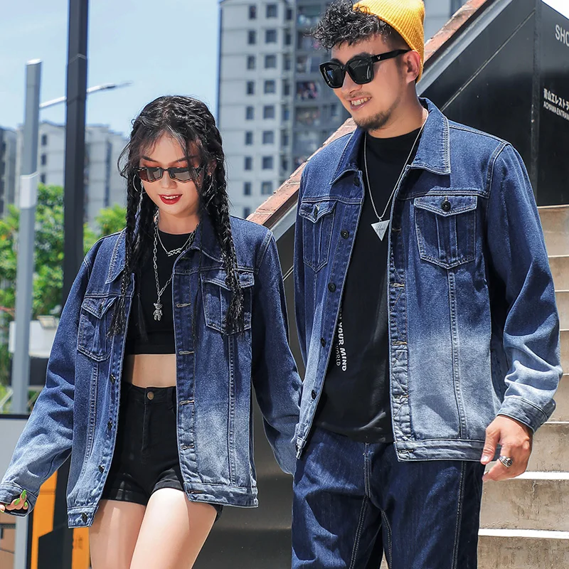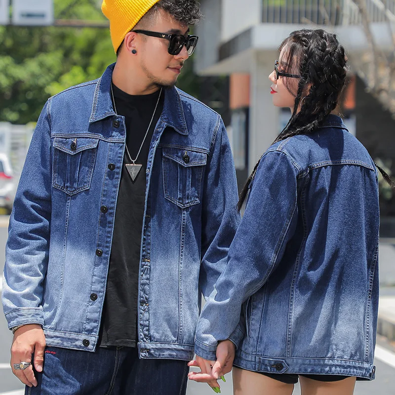 Large Size Couples Wear Fade Color Denim Coat Ladies Fashion Long Sleeve Blouse Loose Korean Top Jacket