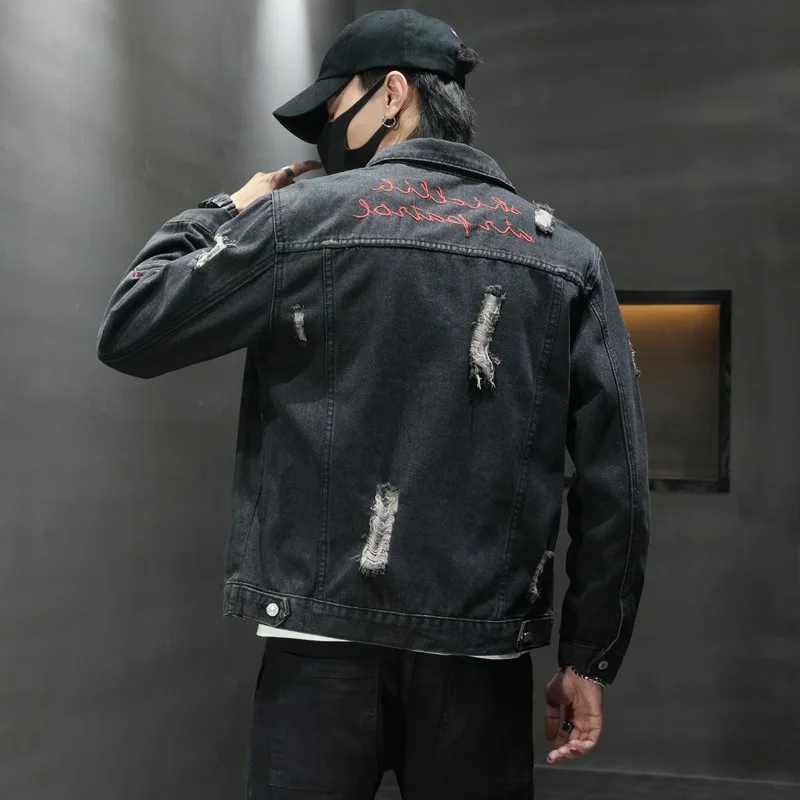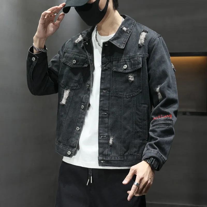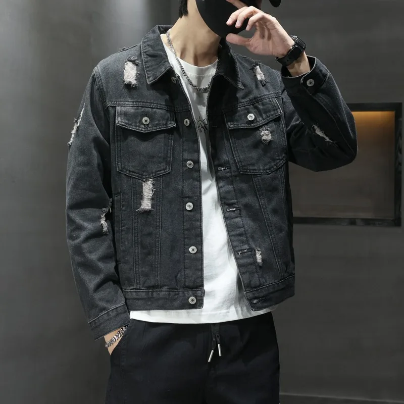Mens Denim Jean Jacket Trendy Fashion Ripped Denim Black Denim Mens Jeans Jacket