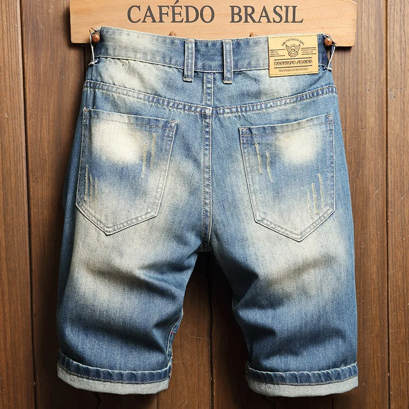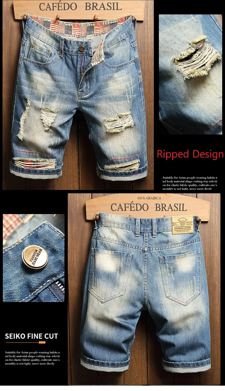 Ripped Hole Short Jeans Summer Hot Denim Jogger Sport Jeans and Fast Shipping Jorts Blue Vintage Men Other Fabric