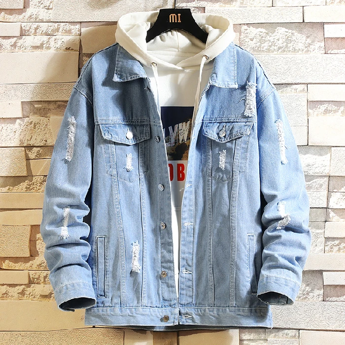 Street Style Ripped Jacket Denim Jeans Jacket Men Comfortable and Stylish Denim Jacket for Men