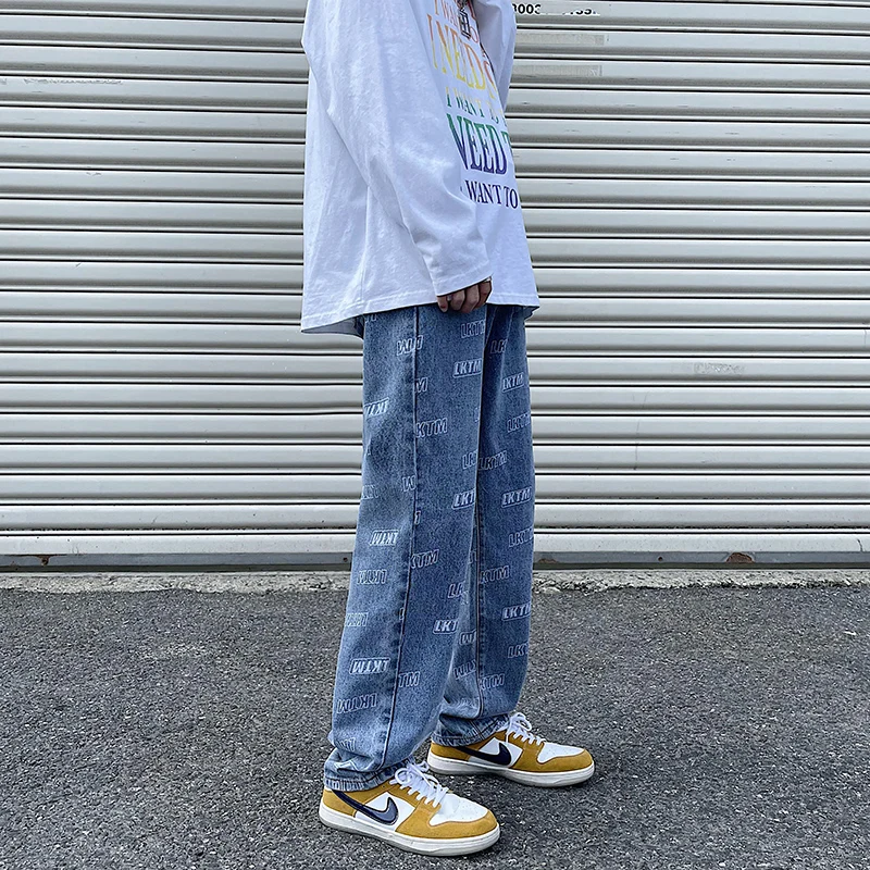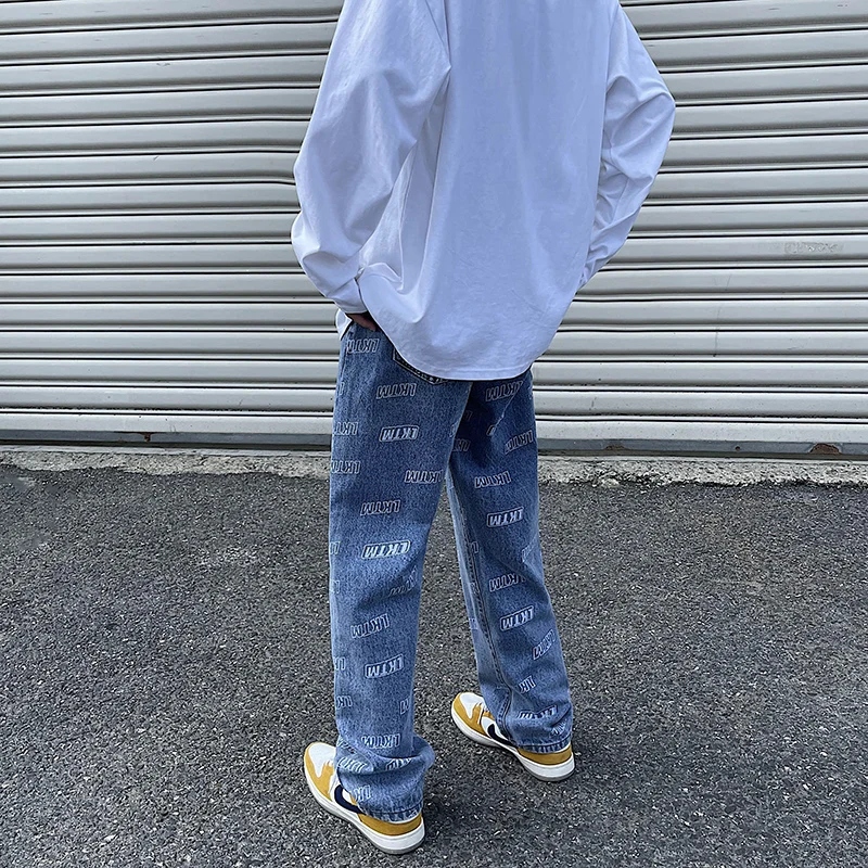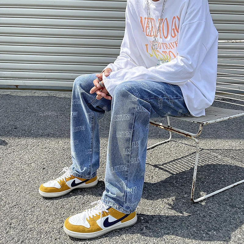 2025 Autumn/winter High Street Monogram Print Fashion Personality Jeans Men Straight Loose Teenage Students Long Pants