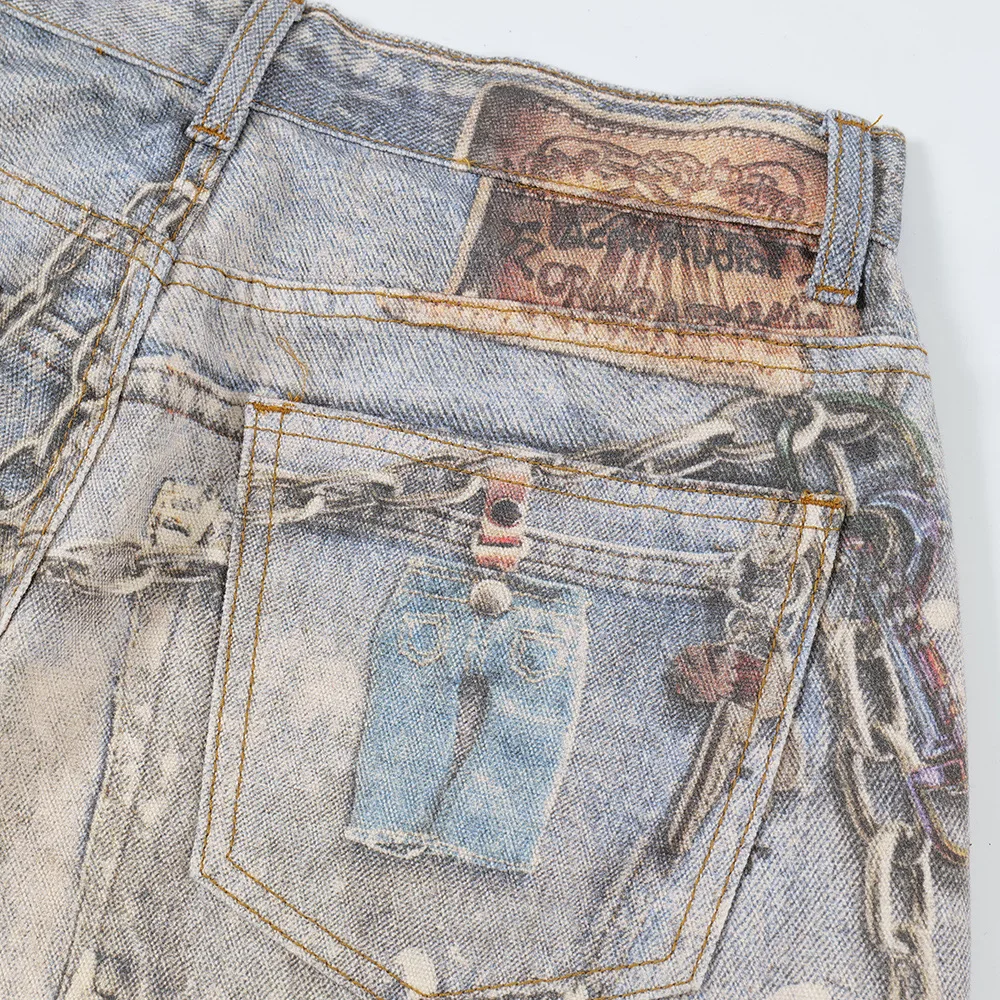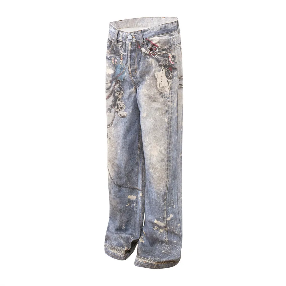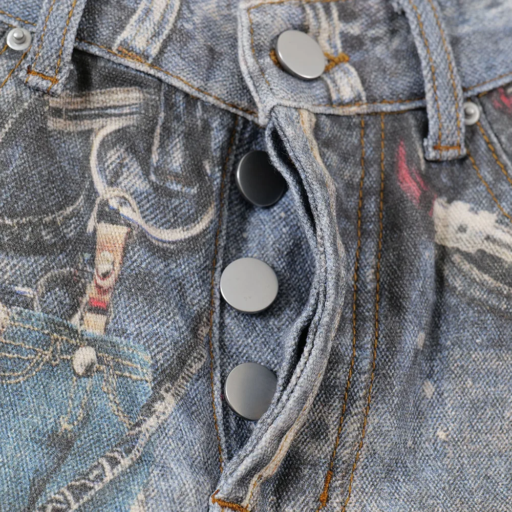 3D Full DTG Printed Wide Leg Baggy Designer Fashion Denim Quality Jeans