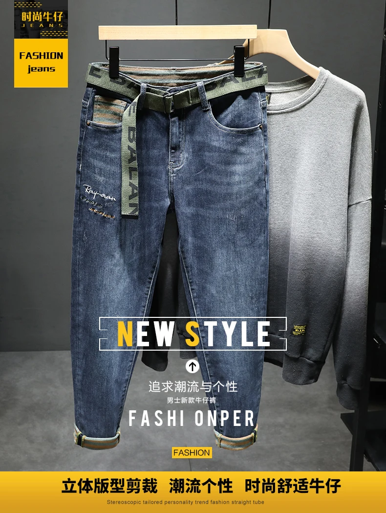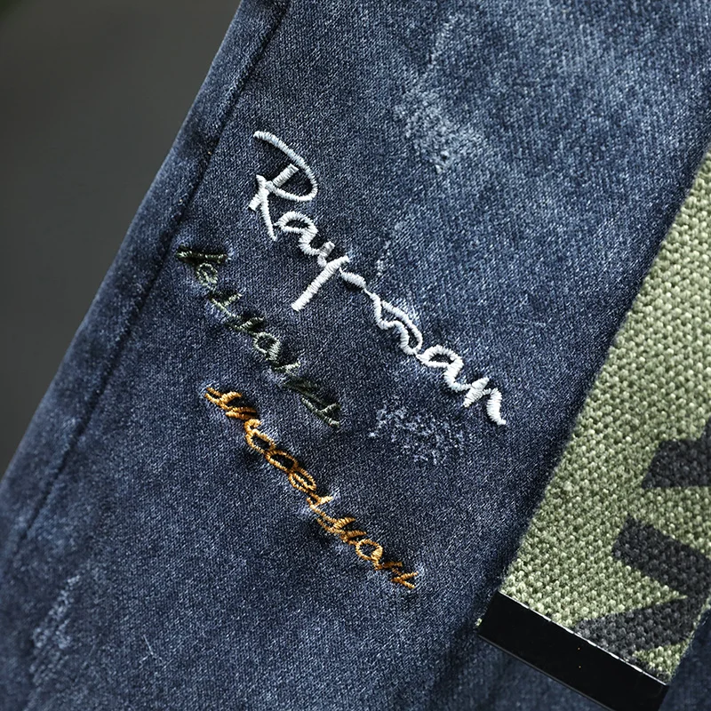 Amazon Hot Sells Embroidered Pants With Iridescence Plus Size Mens Jeans Pant Stretch Jeans