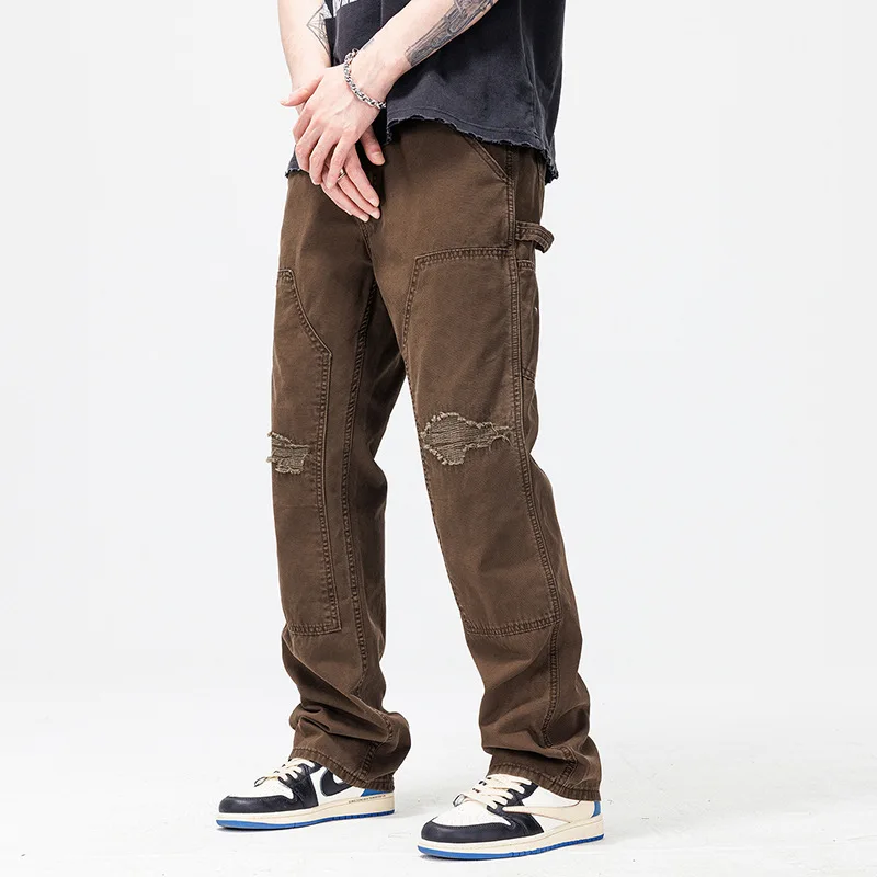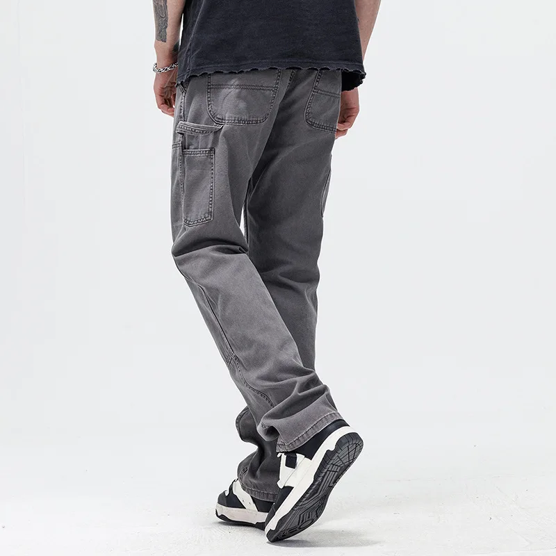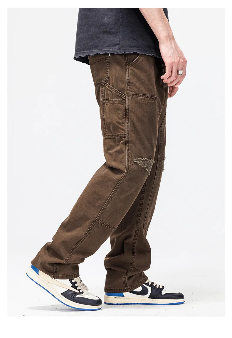 American Retro Wide Leg Loose Straight Khaki Pants for Men Tapered Denim Jeans Men