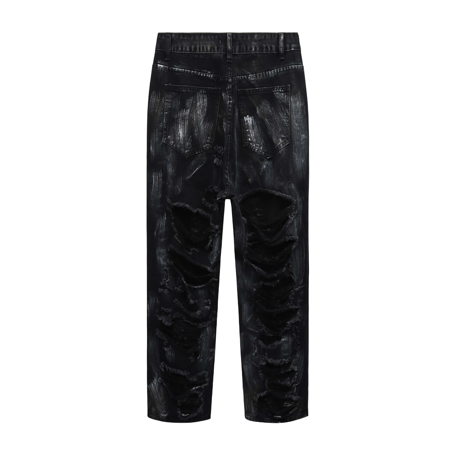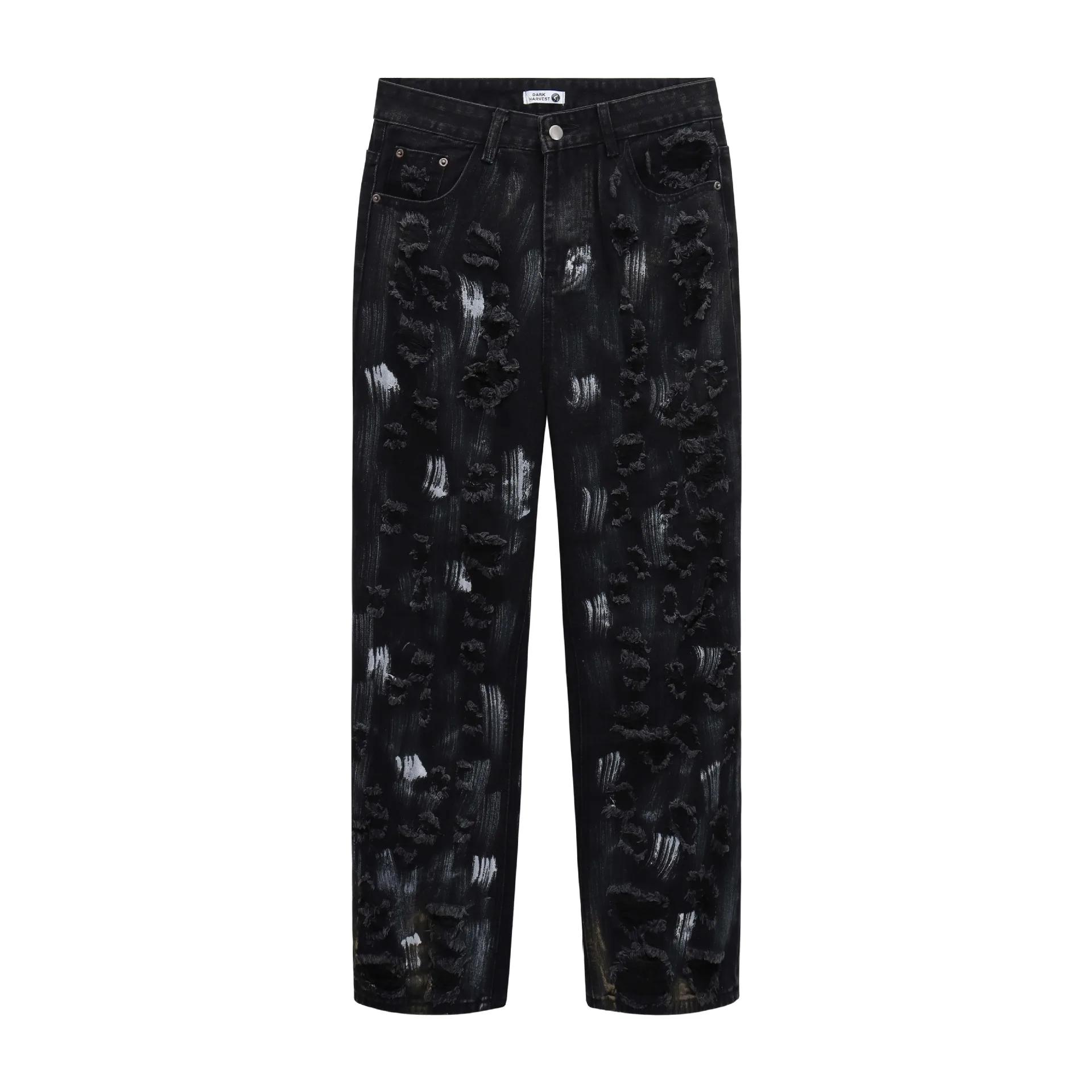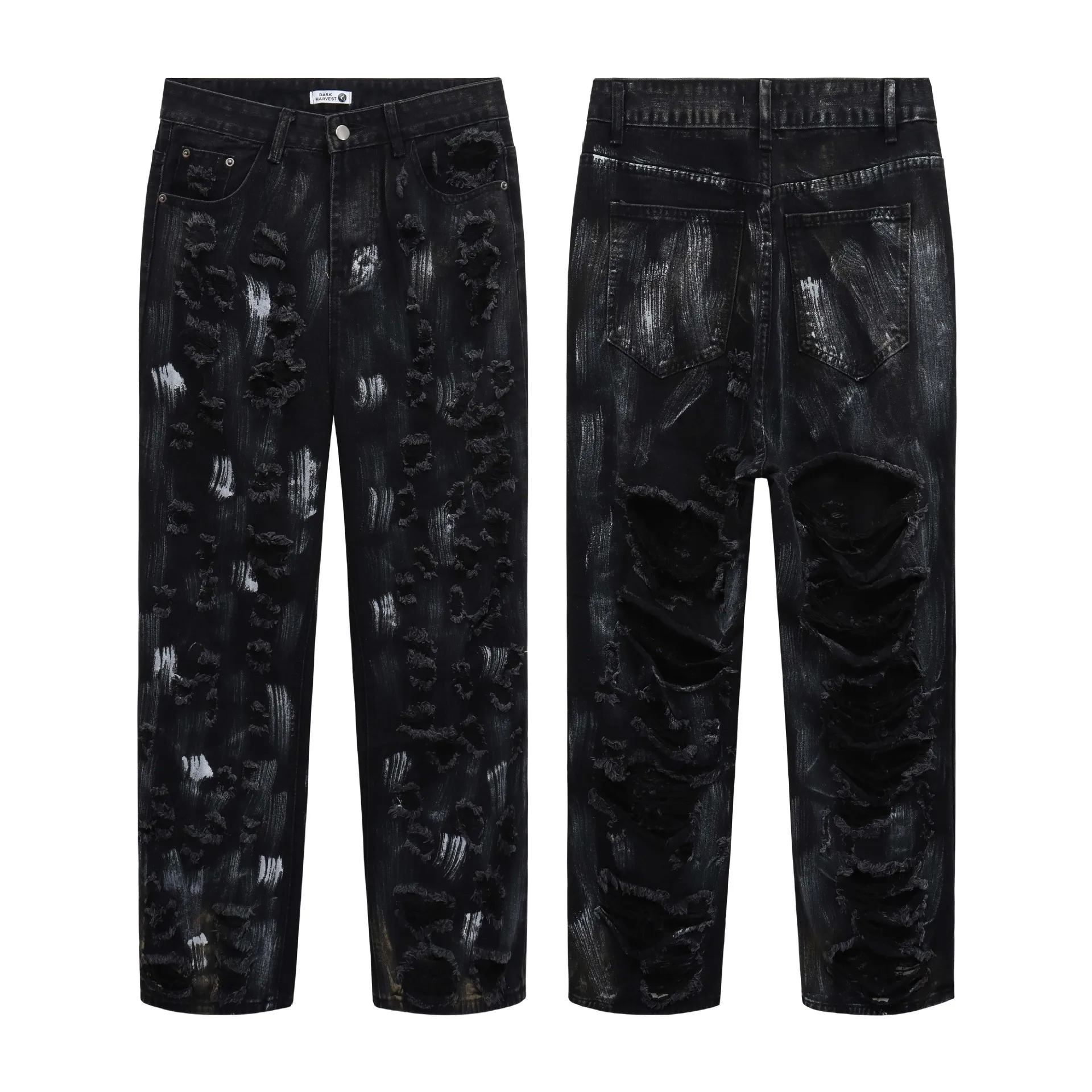 American Splash-Ink Destruction Wear Out Personality Jeans Baggy Pants Men Trousers Jeans