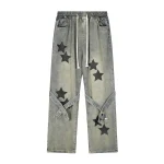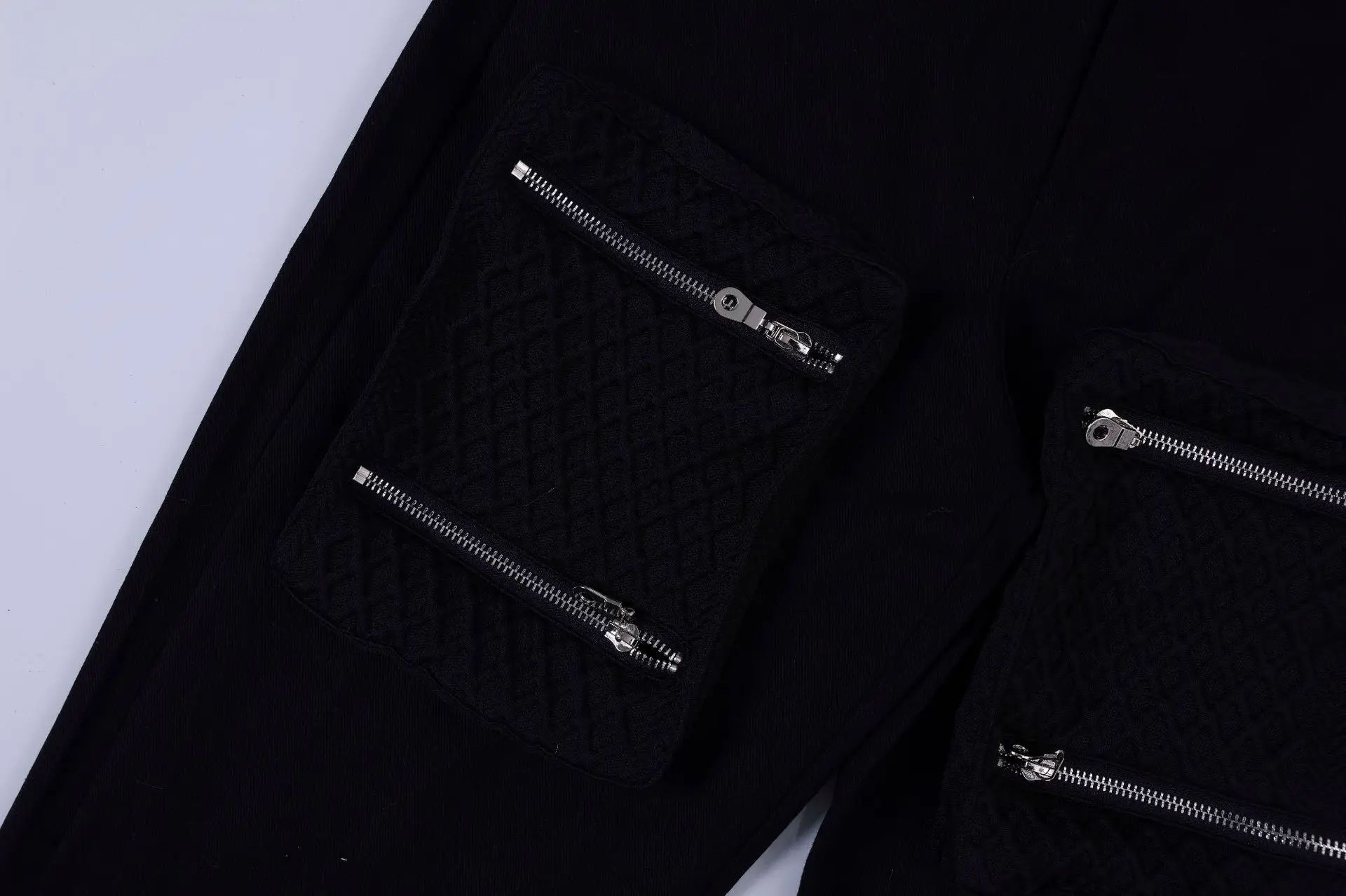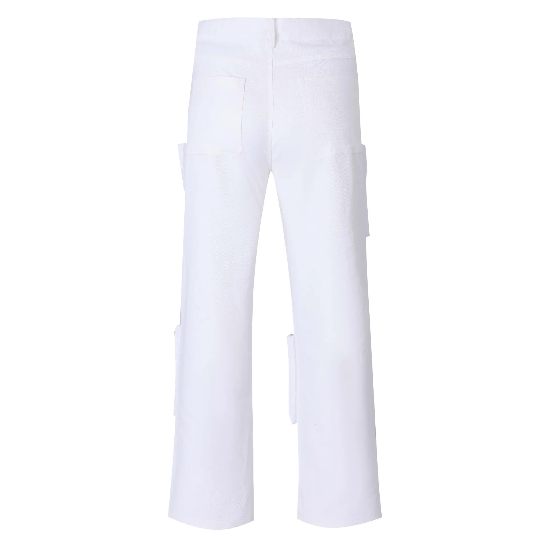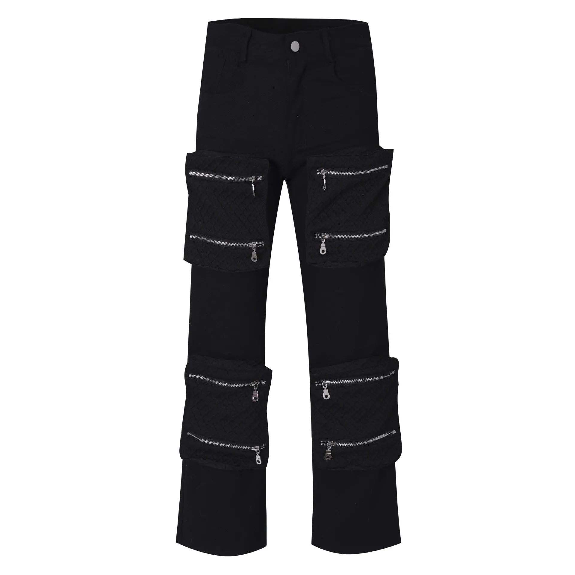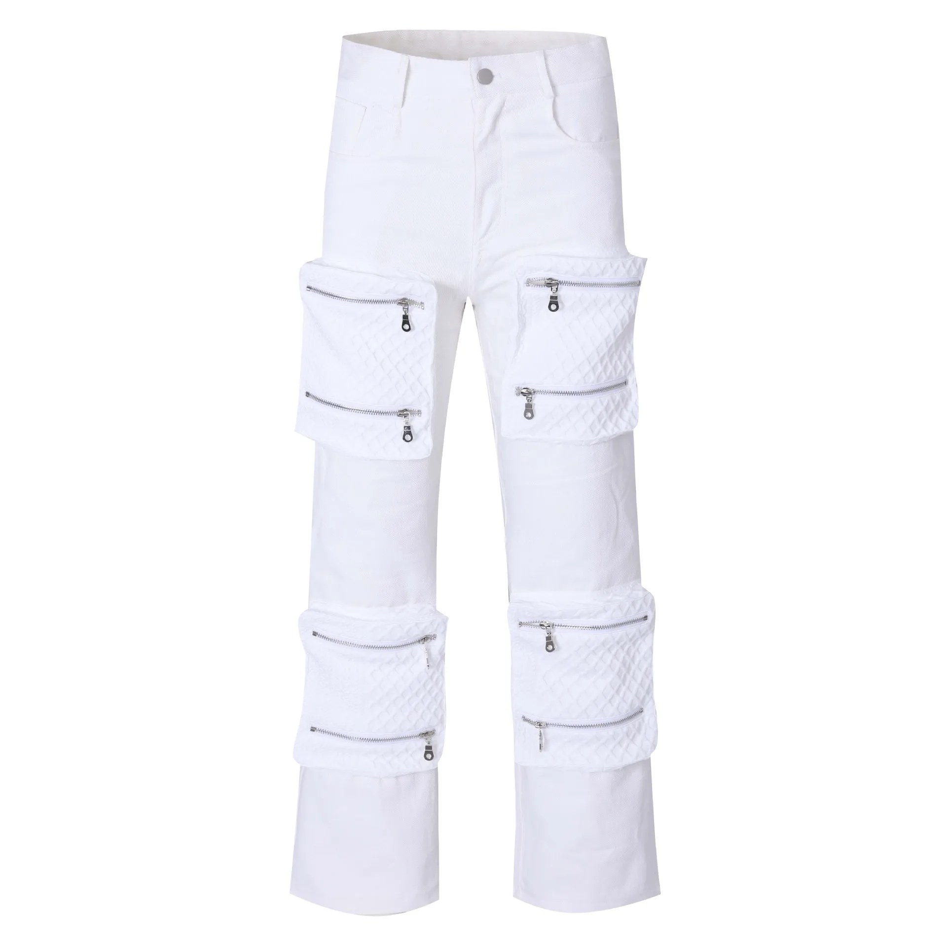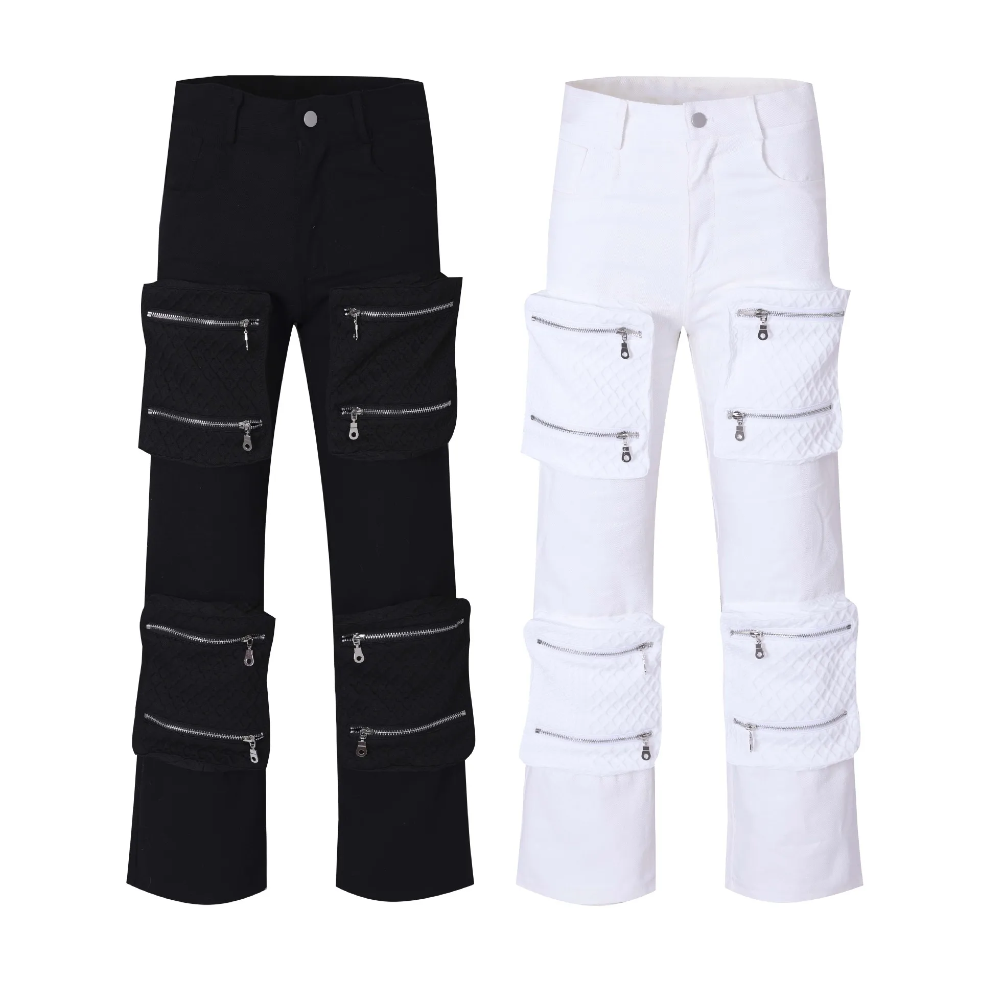 Applique Large Pocket Zipper Decoration Men Trousers Jeans Tapered Denim Jeans Men