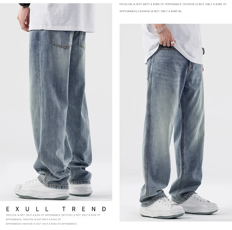 Baggy Hip Hop Straight Leg Fashion Washed Retro Comfortable Casual Jeans
