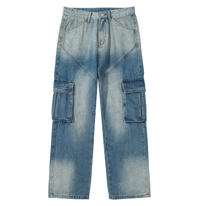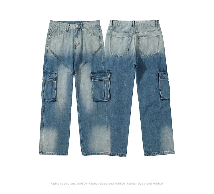 Big Blue Pocket With Big Lines Men Jeans Pants Tapered Mens Trousers Cargos Jeans Baggy