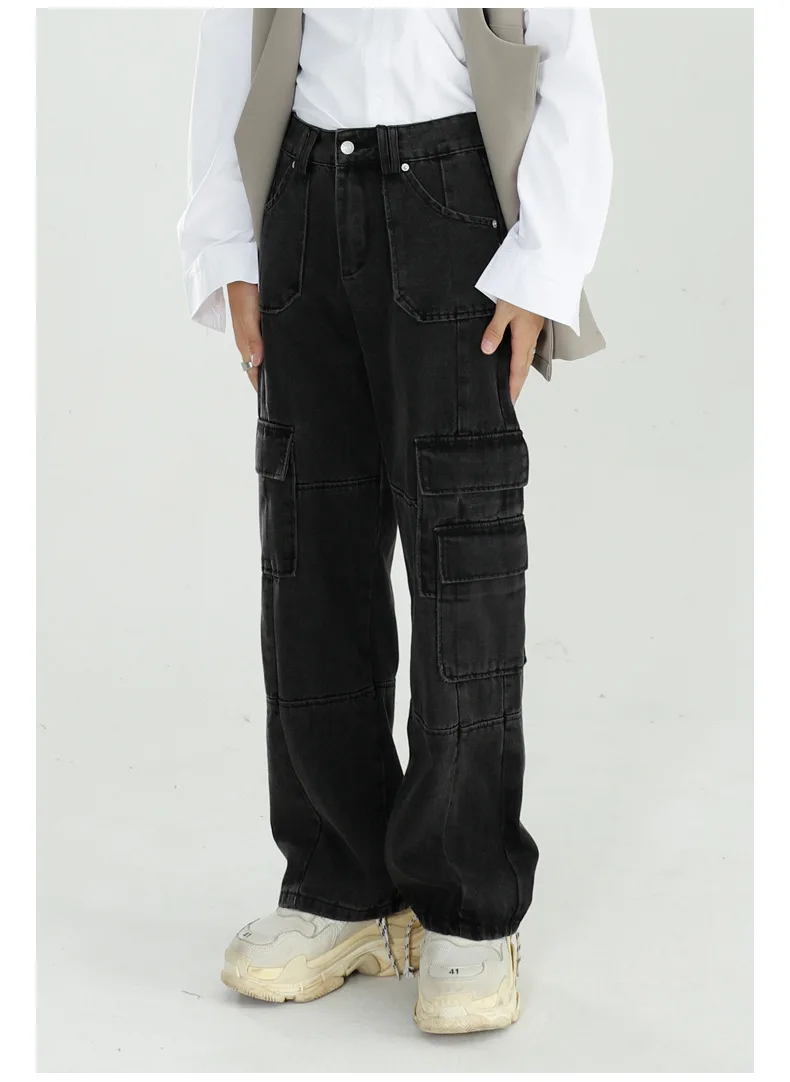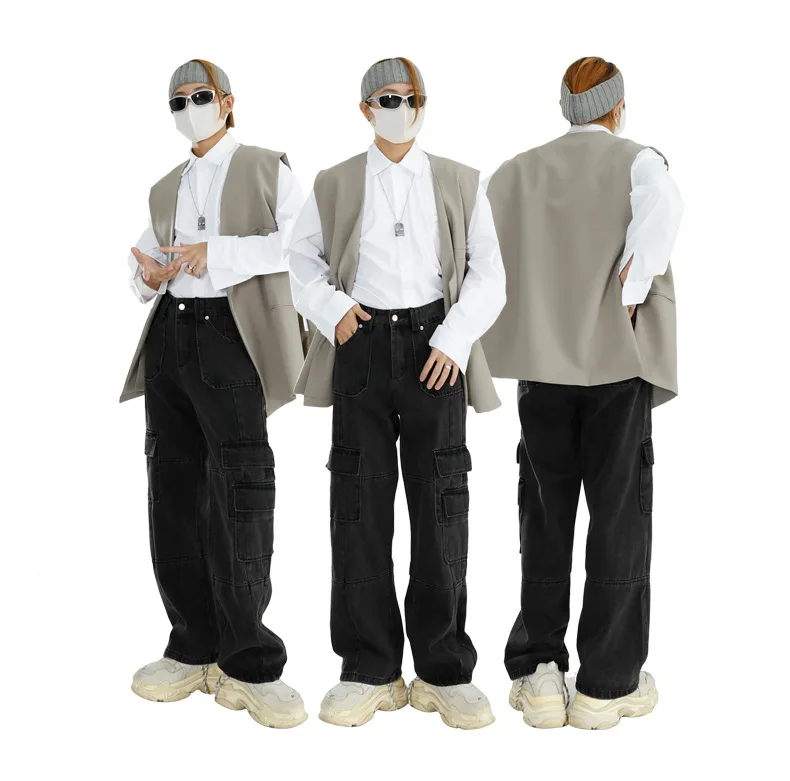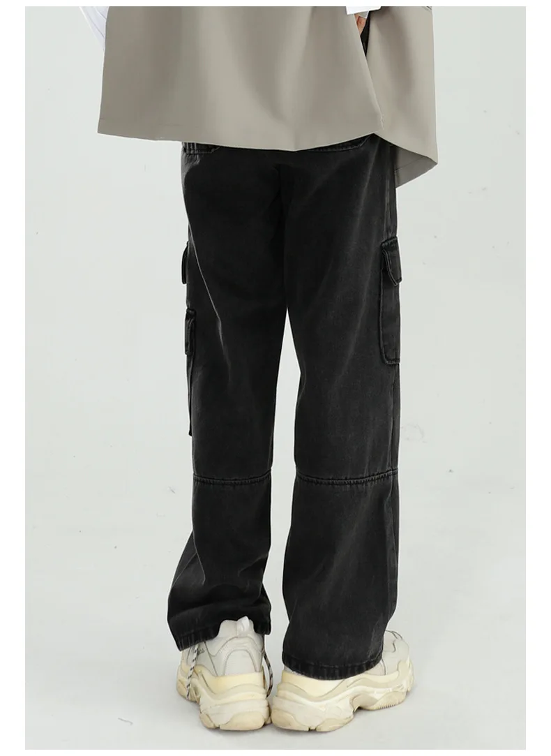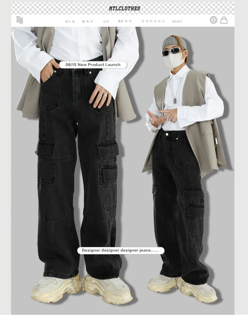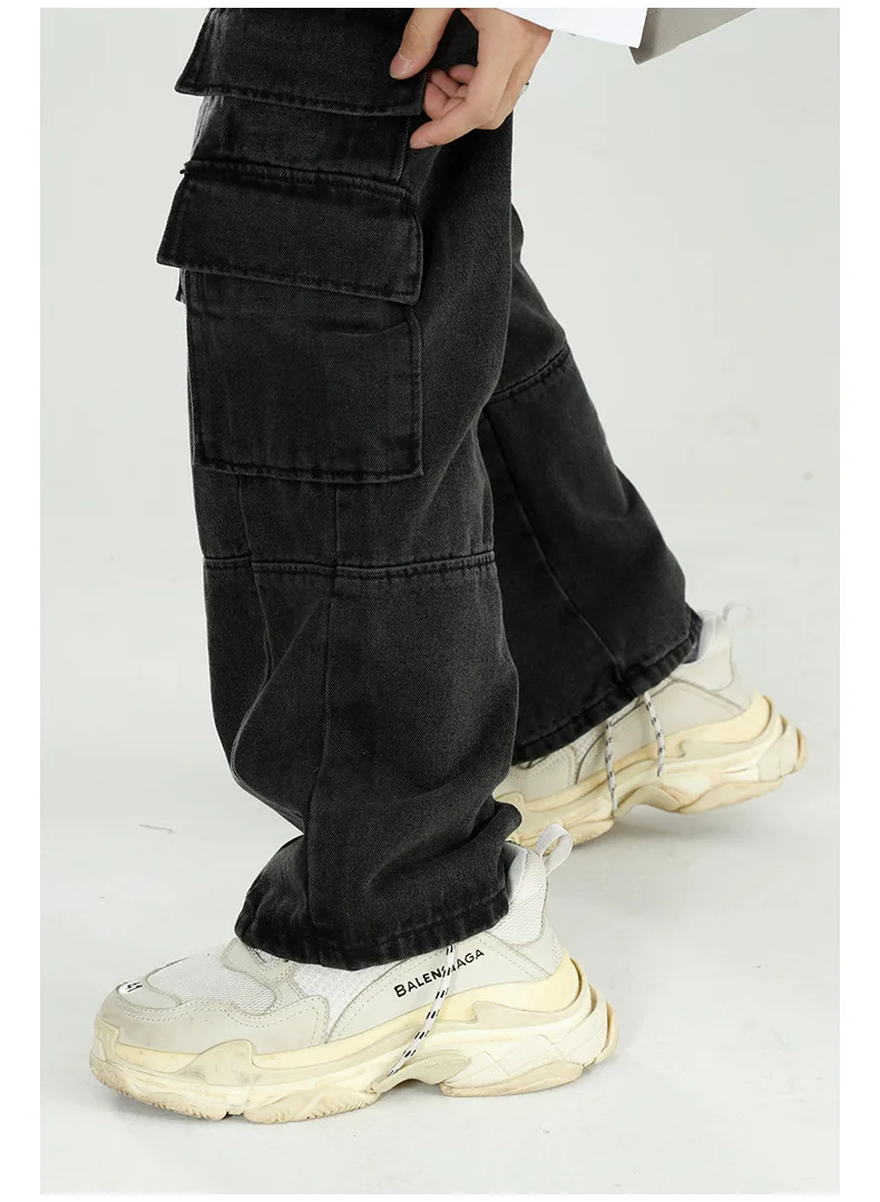 Black Baggy Denim Overalls With Multiple Pockets Men’s Jeans Pants Tapered Mens Designer Jeans