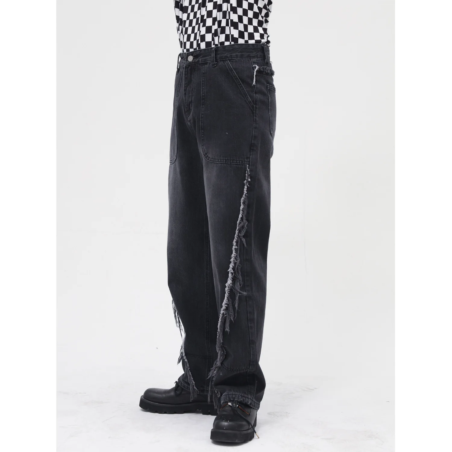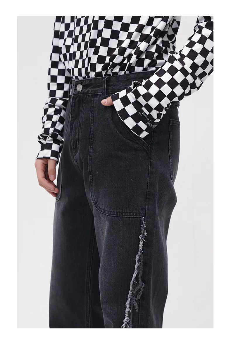 Black Big Pocket Jeans Trousers for Men Hot Sale Denim Jeans Men Street Men Trousers Jeans