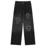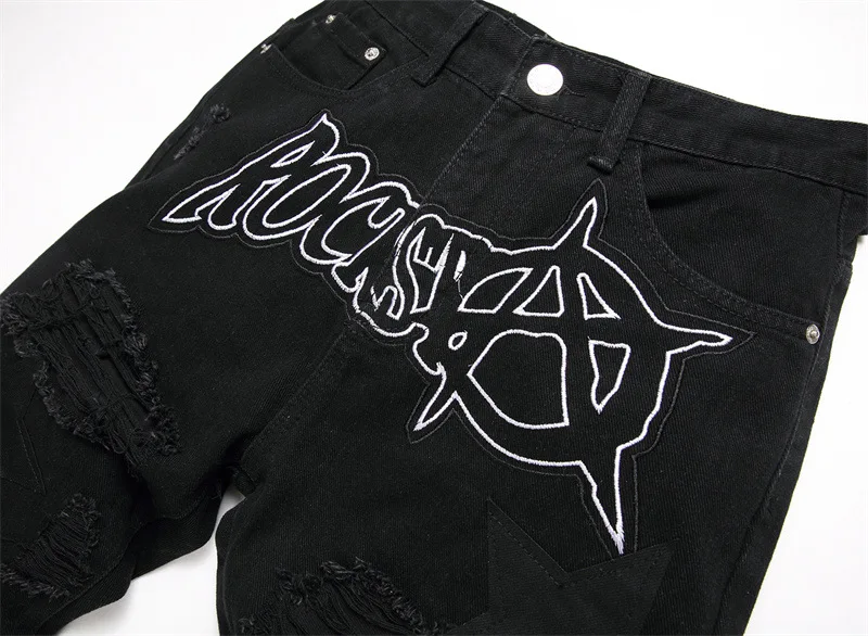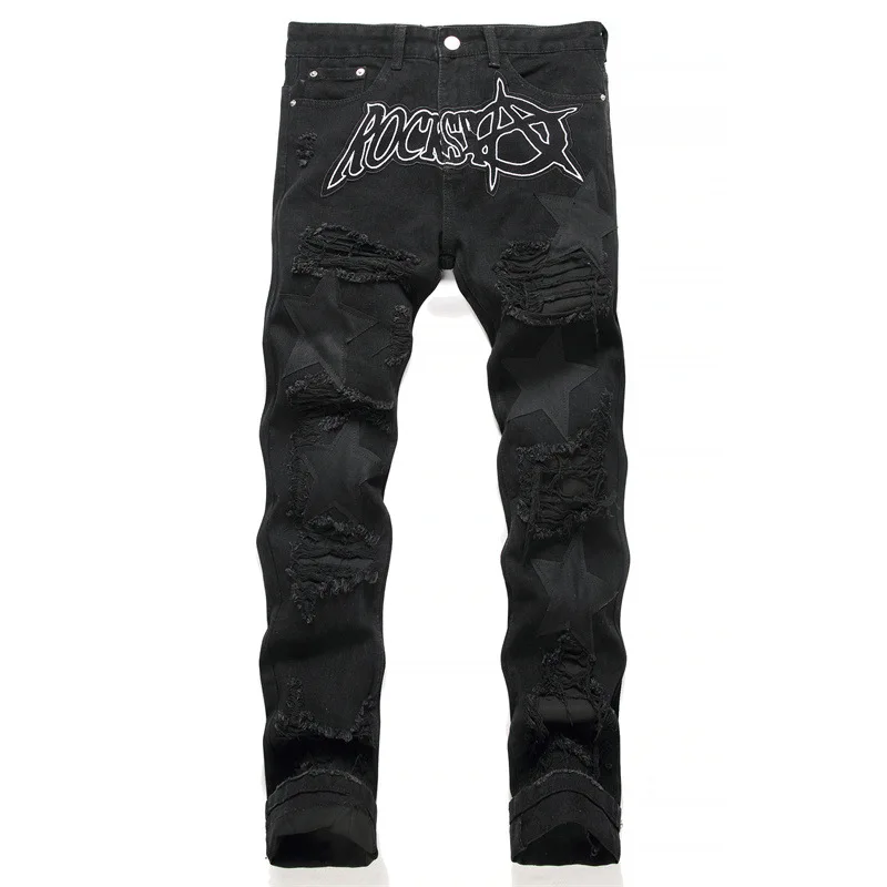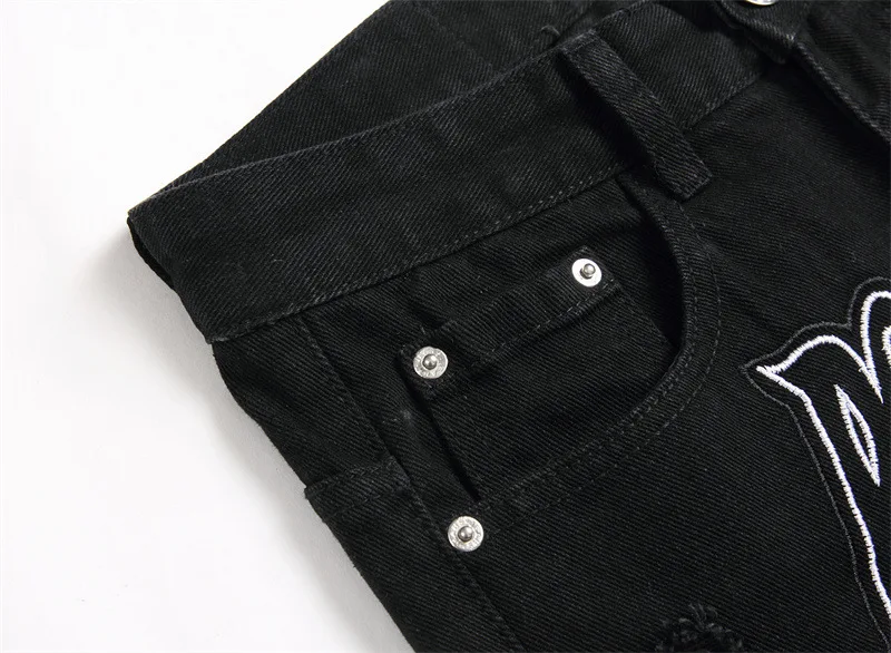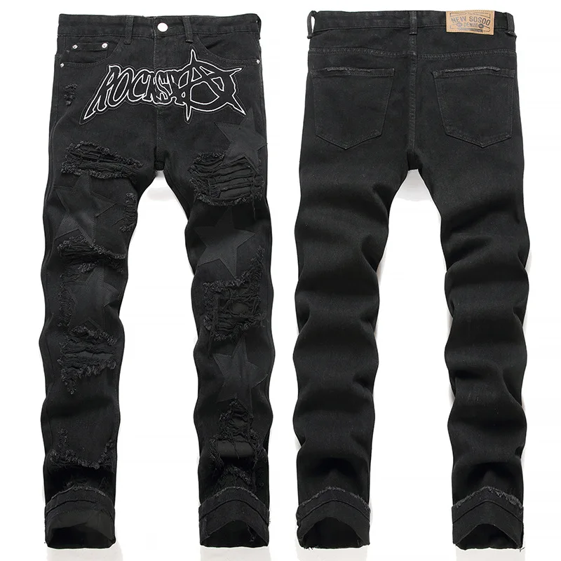 Black Scratch Outdoor Casual High Quality Straight Casual Fashion Jeans