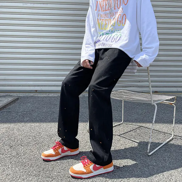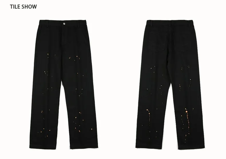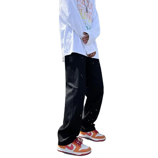 Black Stocked Jeans Oil Paint Streetstyle Oversized Wide Leg Jeans Loose Flared Jeans