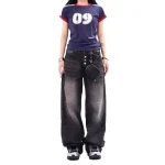 Black Stocked Jeans Oil Paint Streetstyle Oversized Wide Leg Jeans Loose Flared Jeans