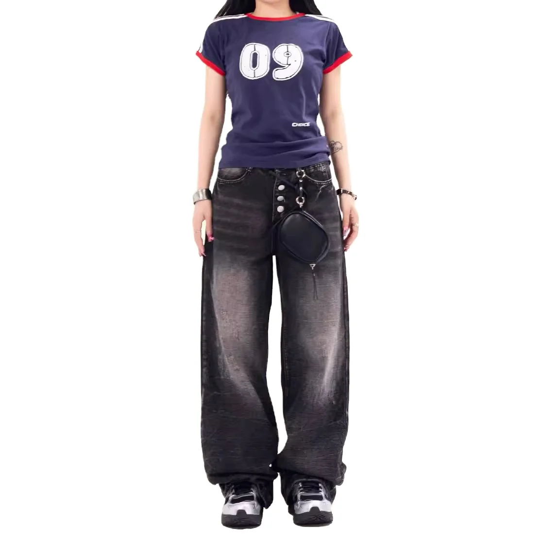 Black Washed Wide Leg Baggy Denim New Style Designer Jeans Men Flare Jeans