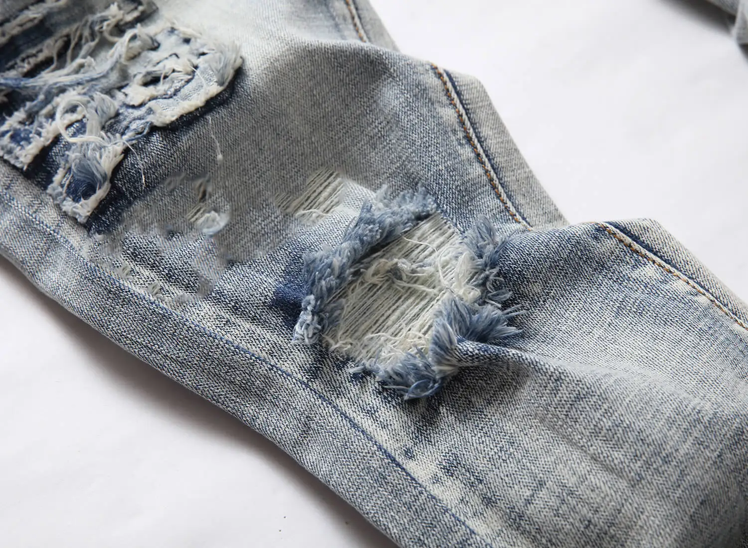 Blue Denim Fabrics Streetwear Designer Hip Hop Y2K Style Denim Jeans for Men