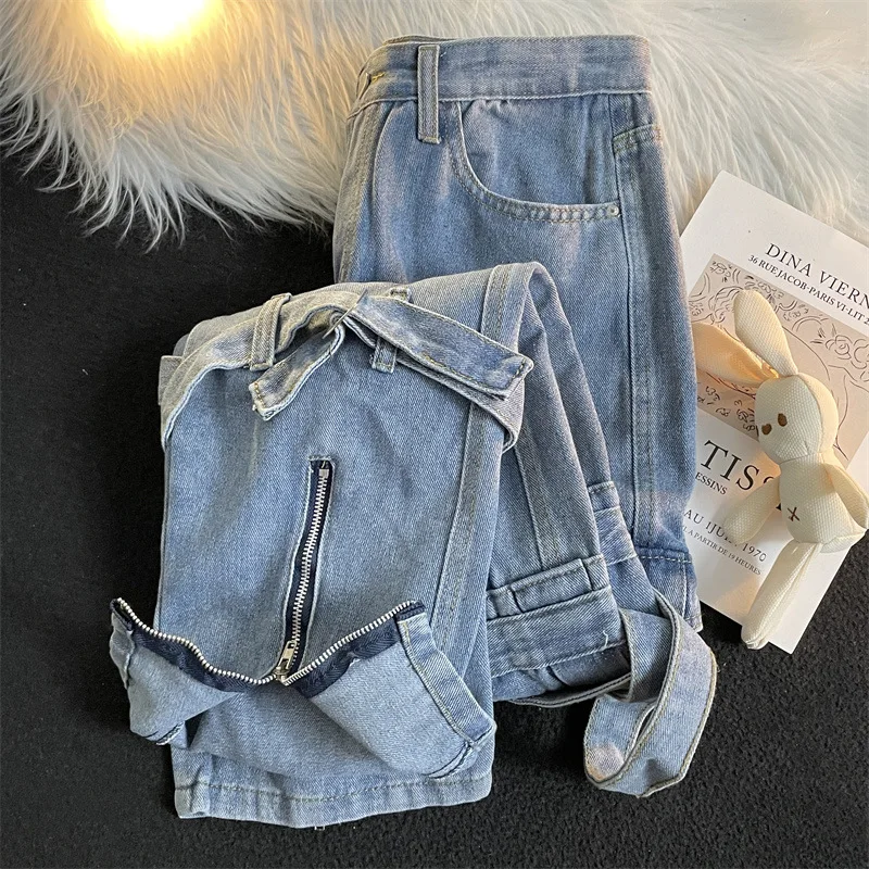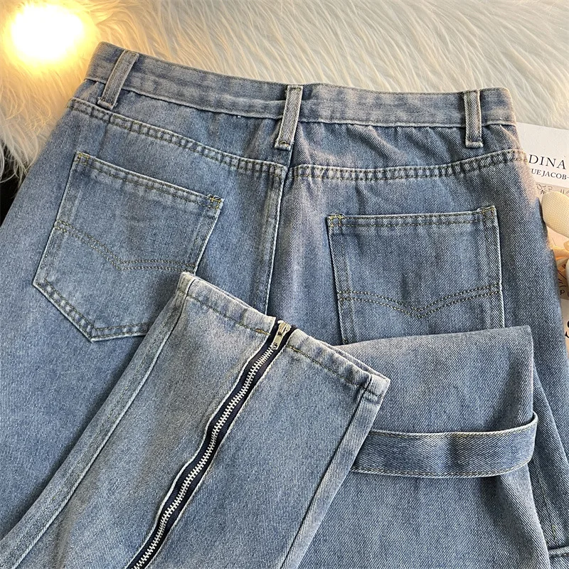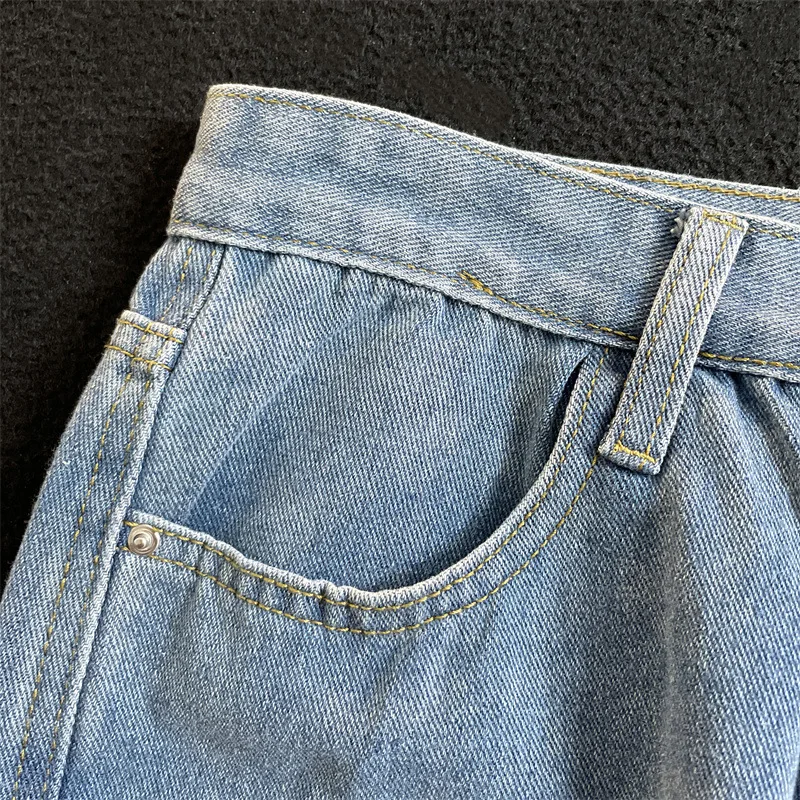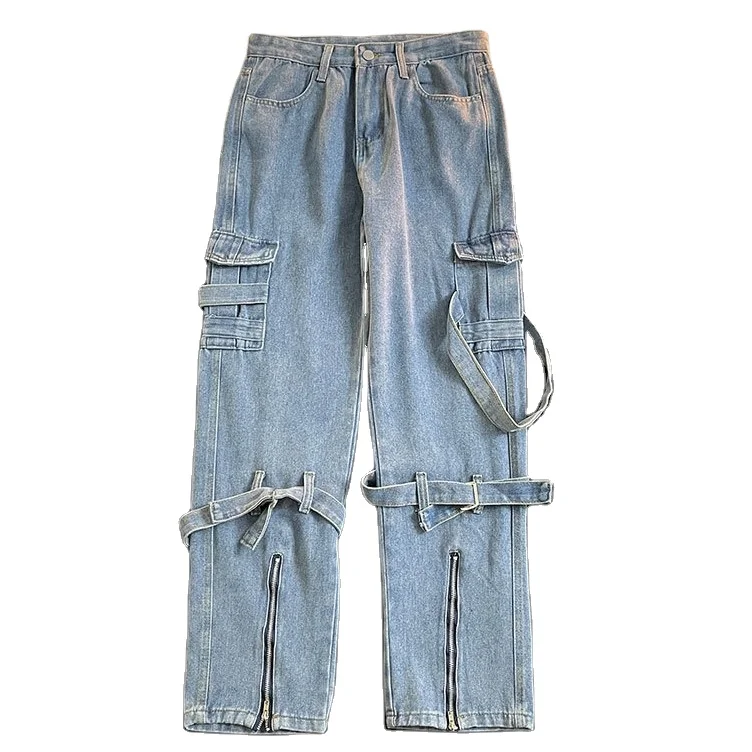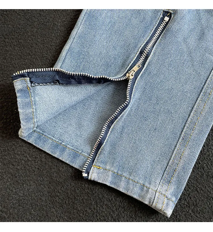 Blue Denim Hip Hop Streetwear Baggy Straight Leg Pants Men Trousers Jeans