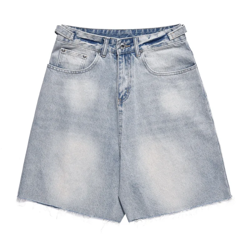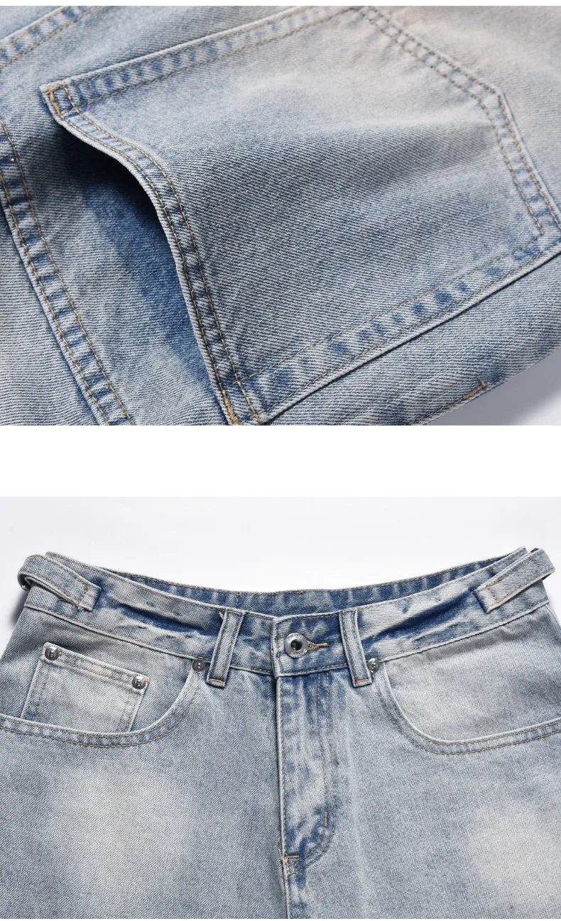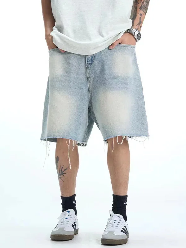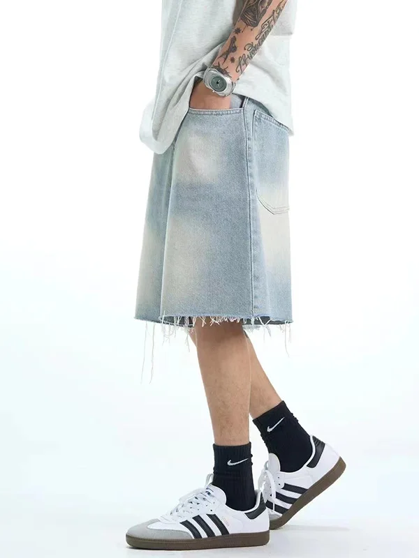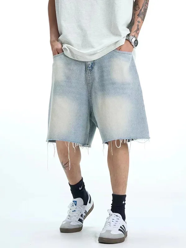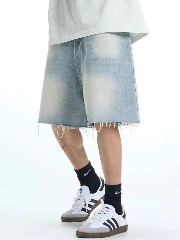 Blue Loose Skate Denim Jorts Plus Size Pants Ripped Shorts Cropped Jeans Distressed Shorts Men