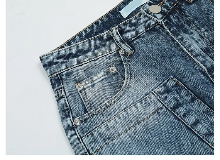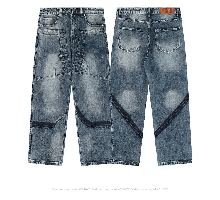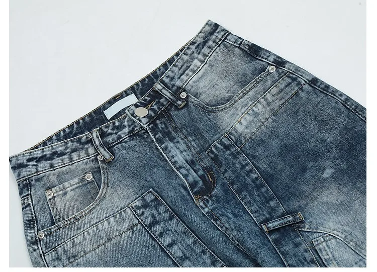 Blue Rewash Water Large Pocket Splicing Geans Pent for Men Jeans Baggy Large Size Jeans