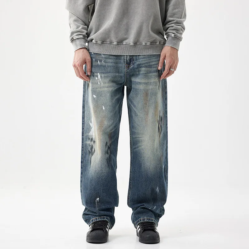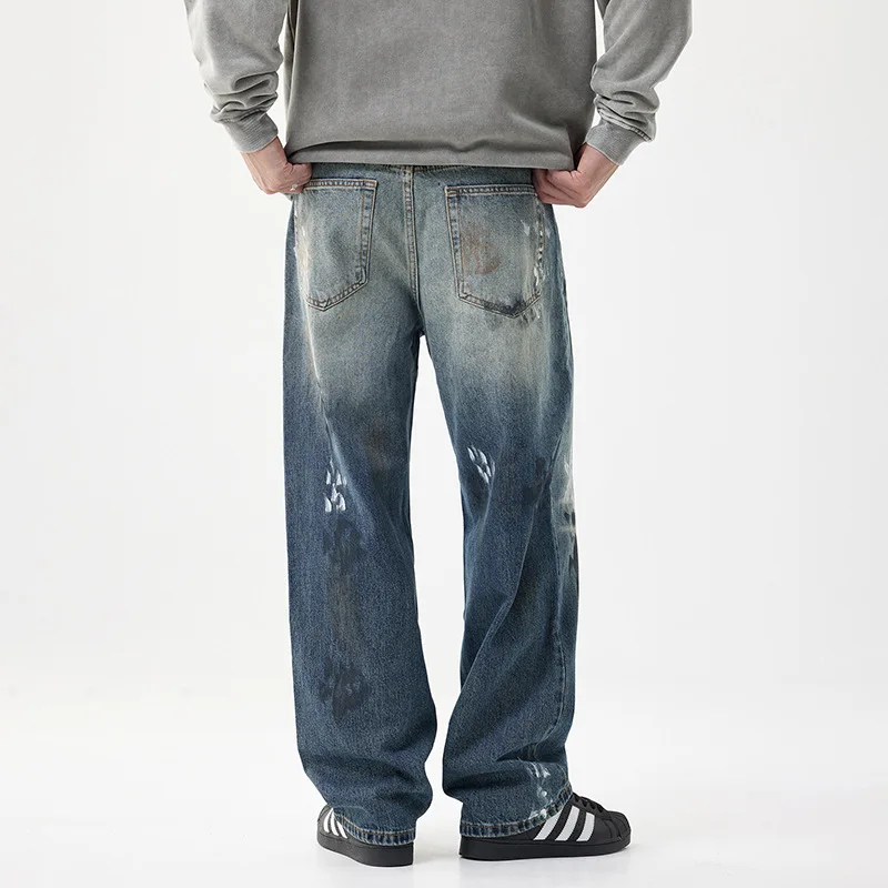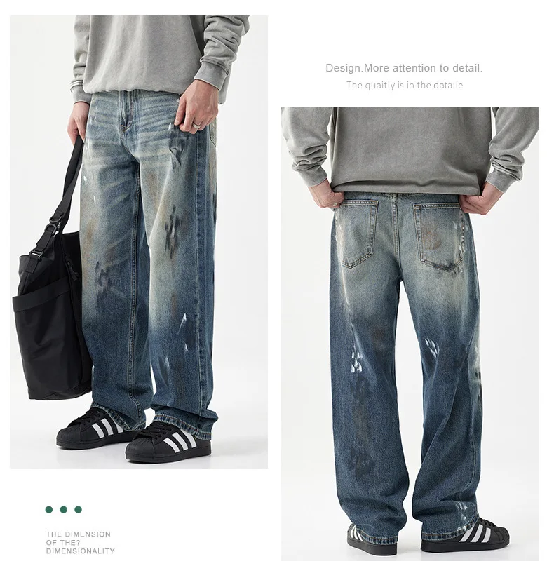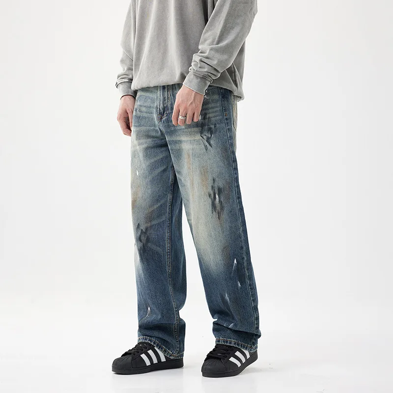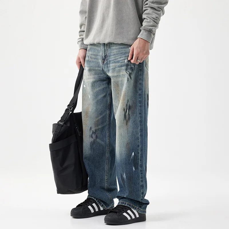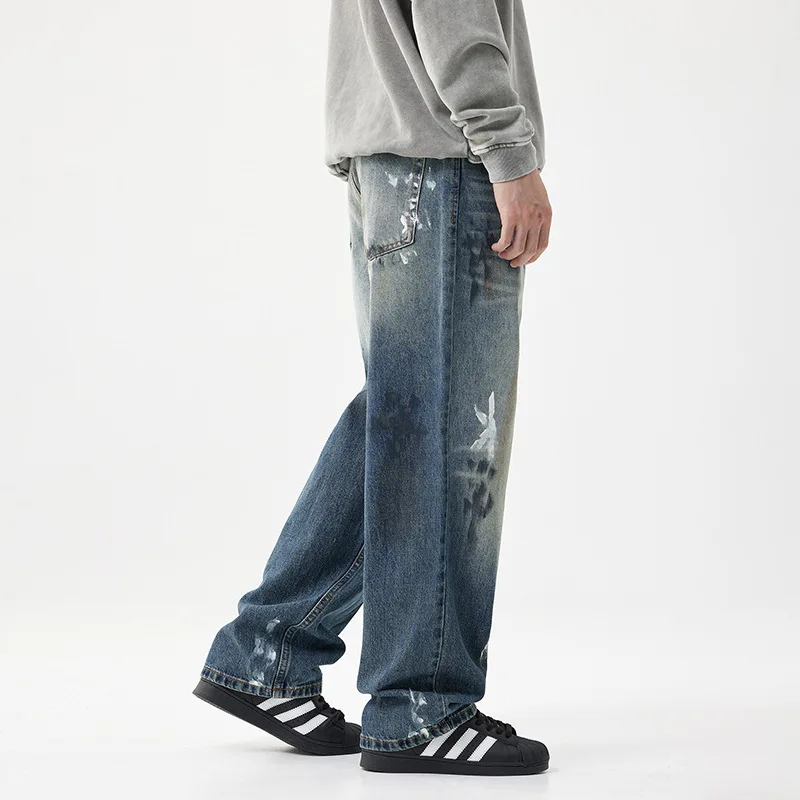 Blue Wash Printed Designer Straight Style Denim Pants Casual Y2k Quality Jeans