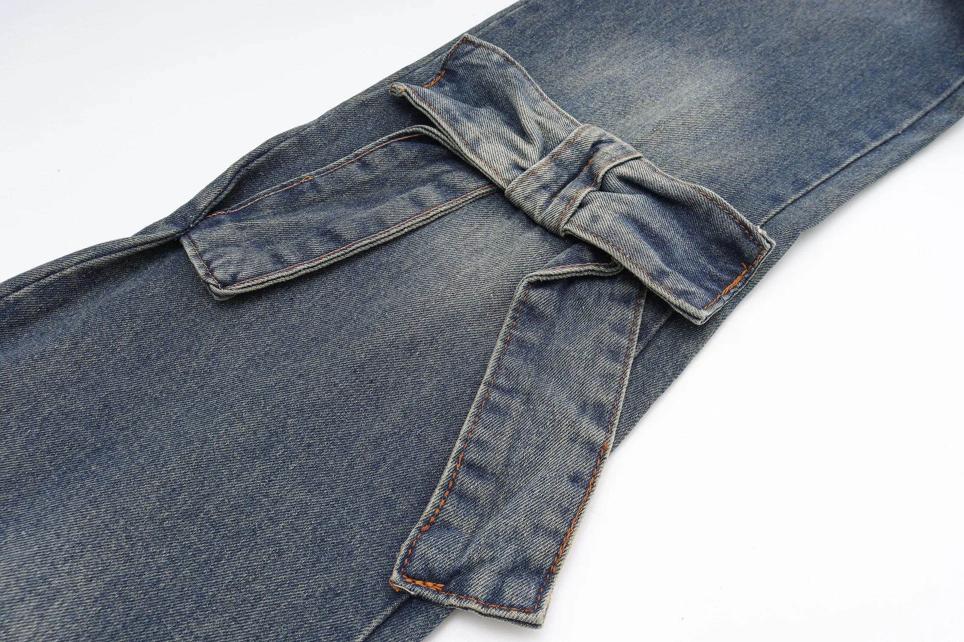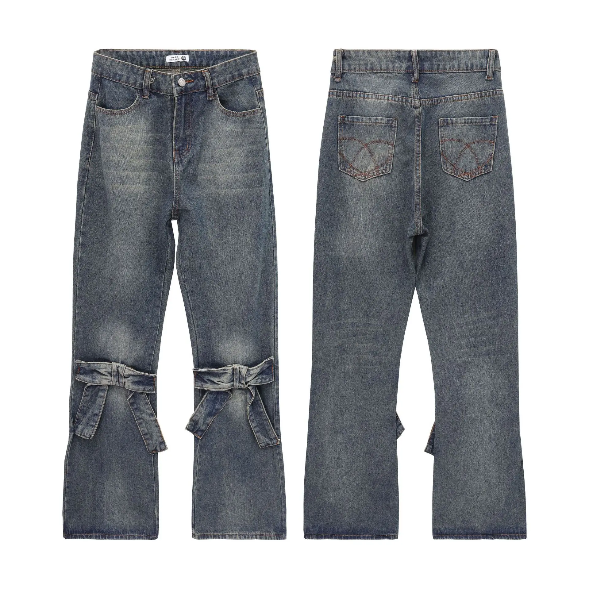 Bow Washed Worn Denim Jeans Men Tapered Jeans for Men Fashion Mens Designer Jeans