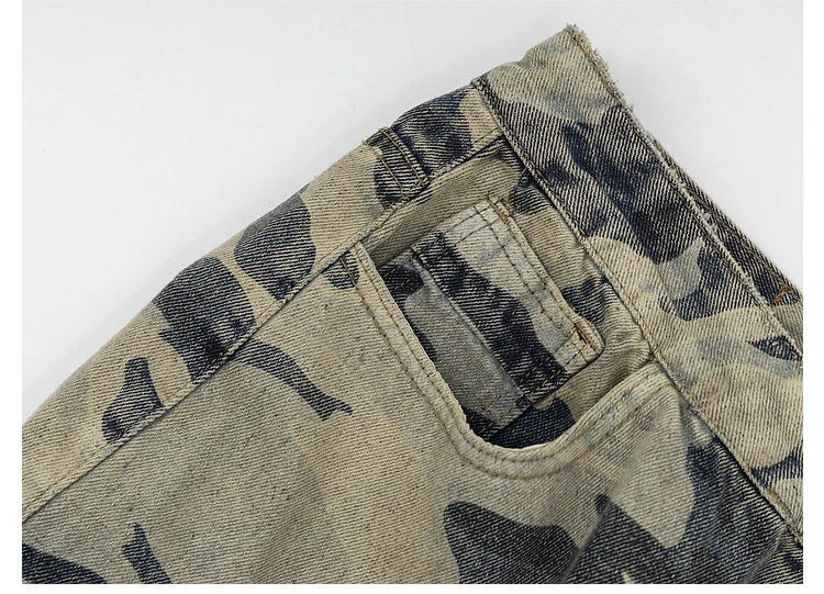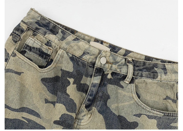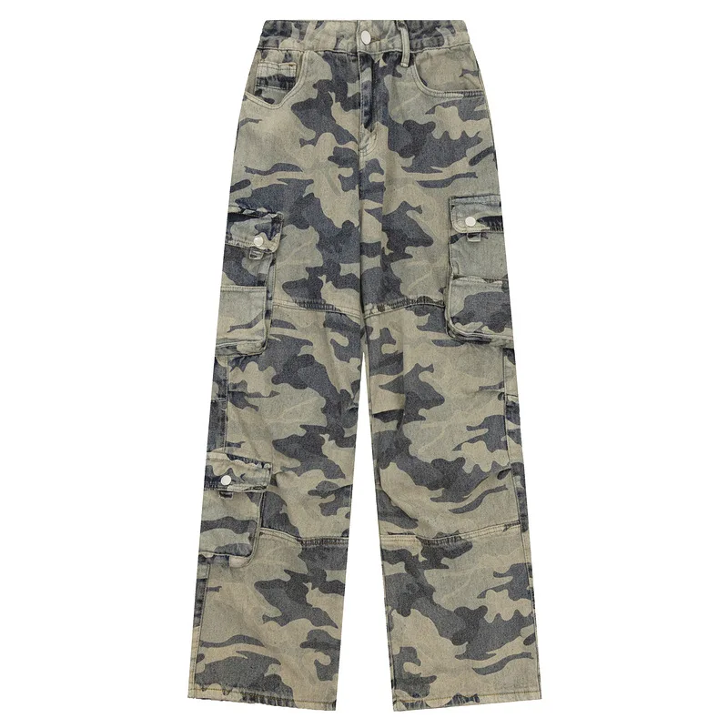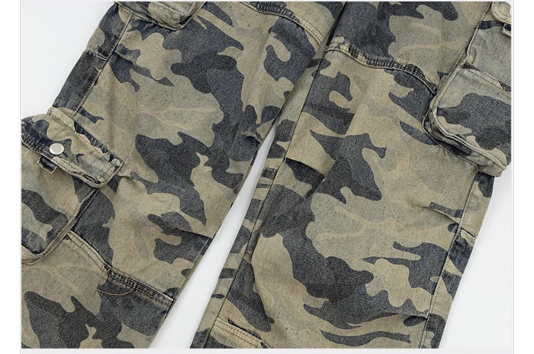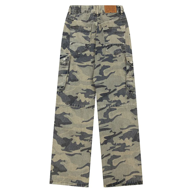 Camouflage Pants Wide Leg Fashion Streetwear Overall Patchwork Cargo Jeans