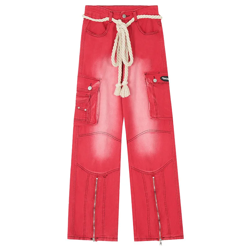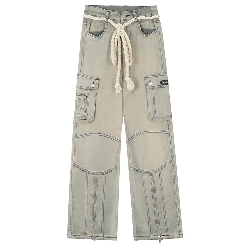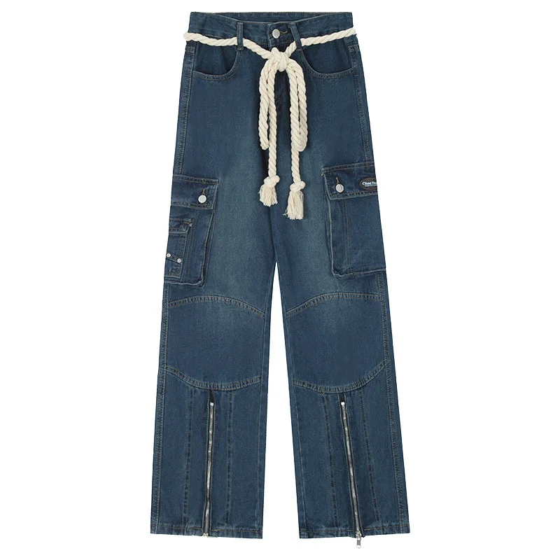 Cargo Style Jeans With Zipper Toe Trousers for Men Tapered Baggy Jeans Men Wide Jeans