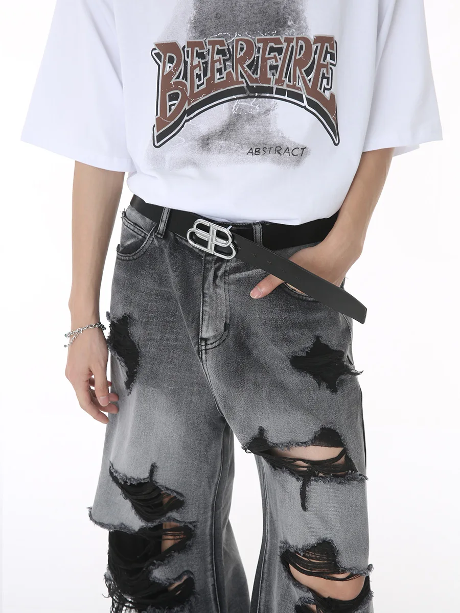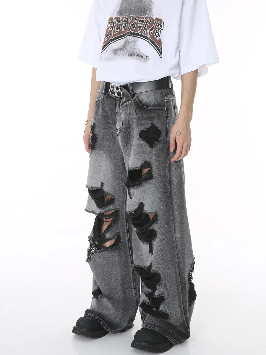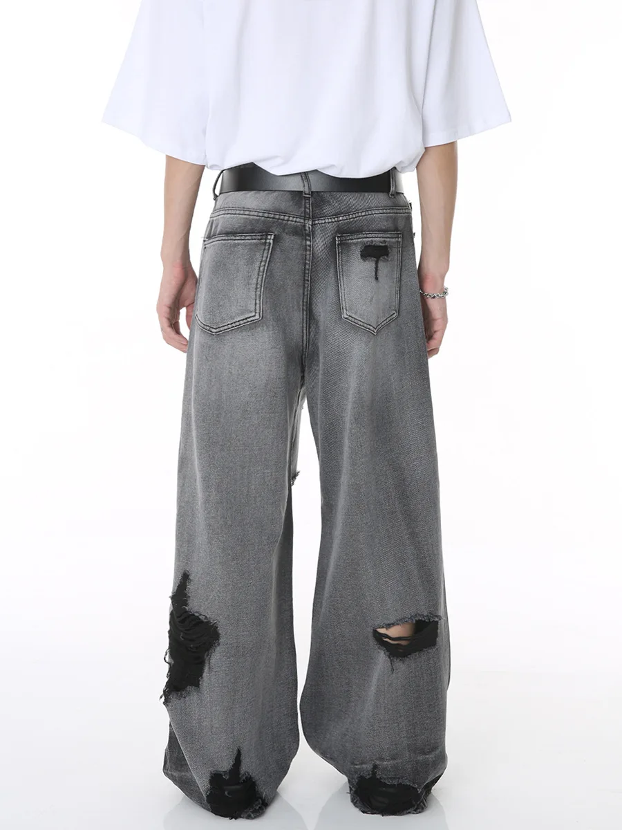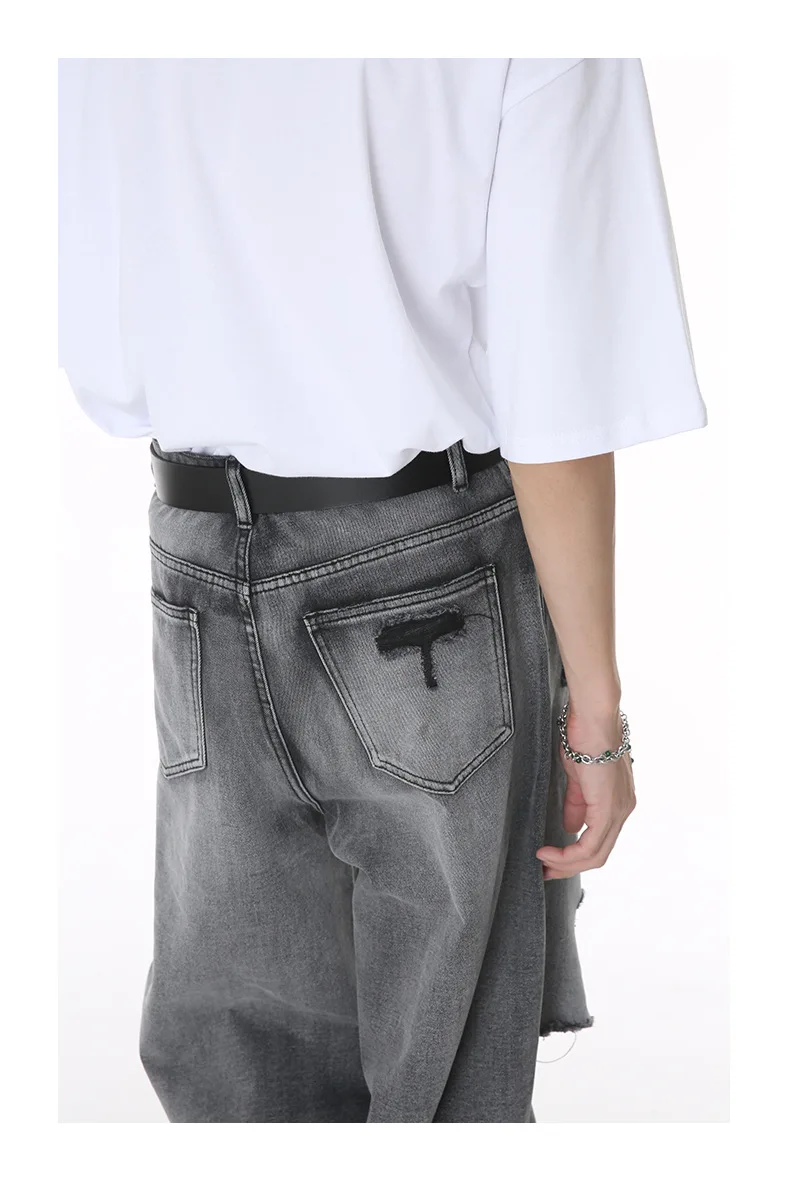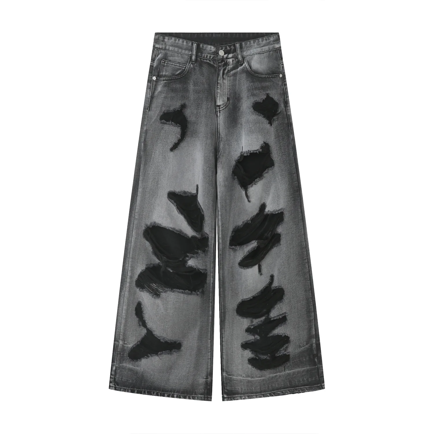 Carpenter Designer Men’s Hip Hop Rip Hole Jeans Fashion Black Grey Wash Stone Loose Men’s Pants TikTok Best-Selling Jeans