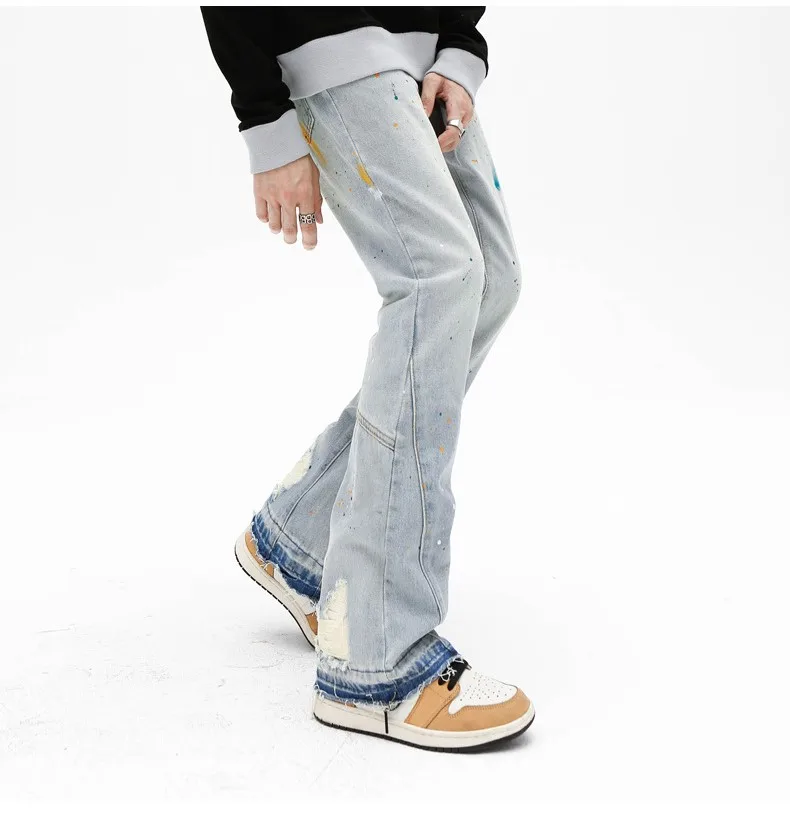 Casual High Street High Quality Straight Painting Loose Hip Hop Denim Jeans