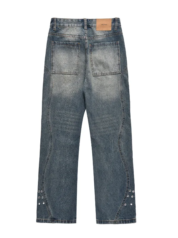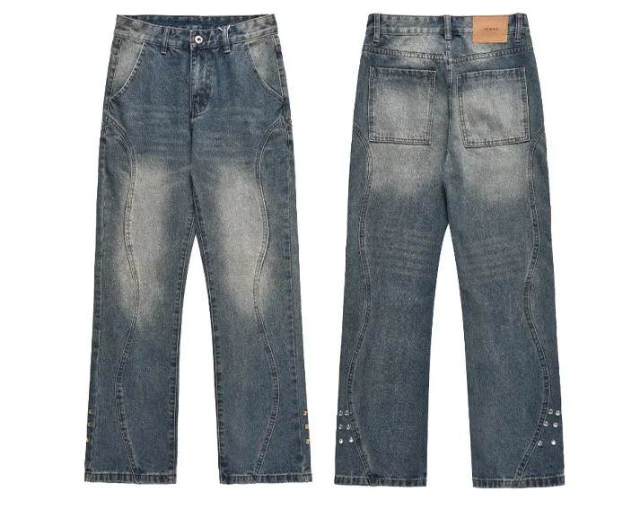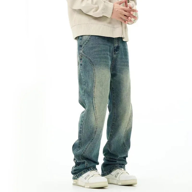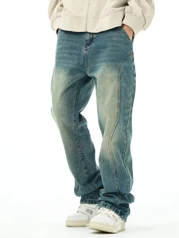 Casual Straight-Leg Streetwear Washed Vintage Denim High Street Men’s Jeans
