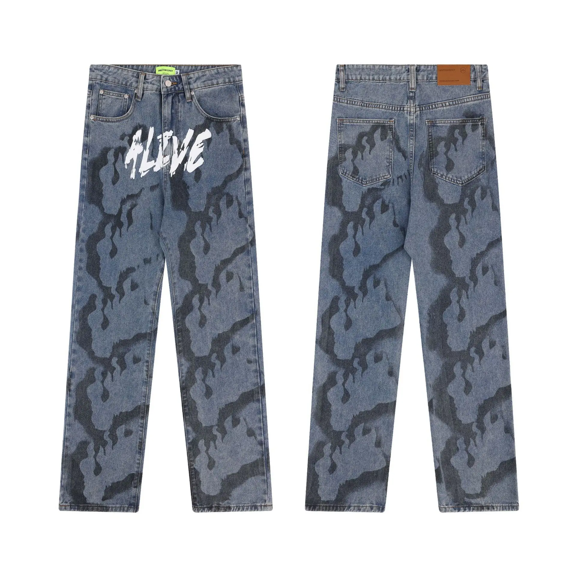 Contrasting Letter-Print Jeans for Men Baggy Jeans Men Tapered Mens Designer Jeans