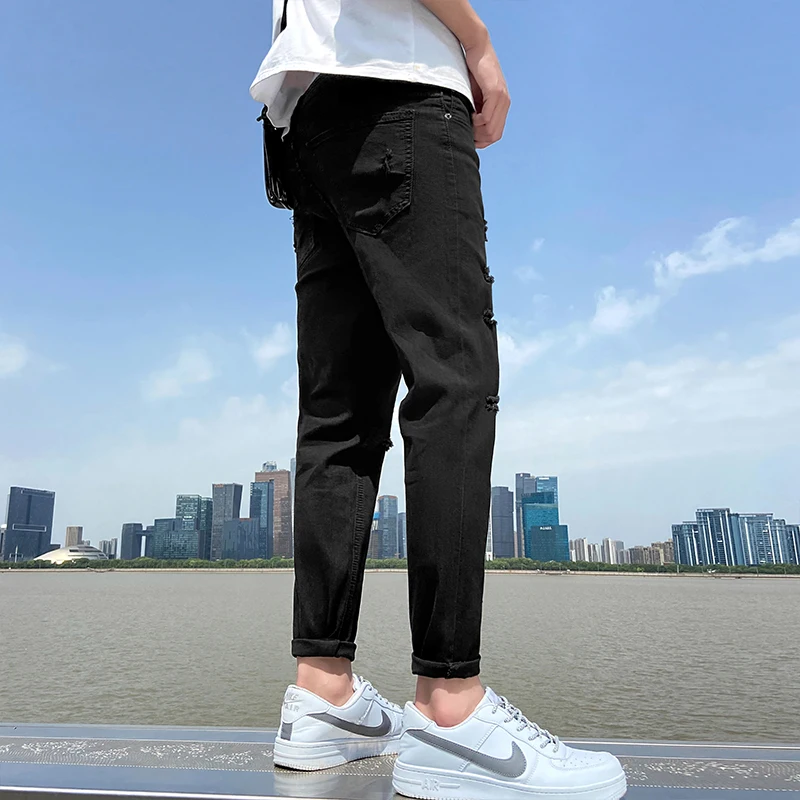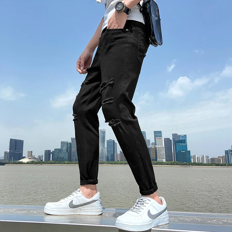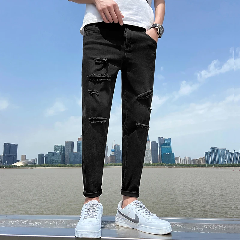 Cotton Ripped Pants Denim Jeans for Men Men Trousers Jeans Black Tapered Men Skinny Jeans