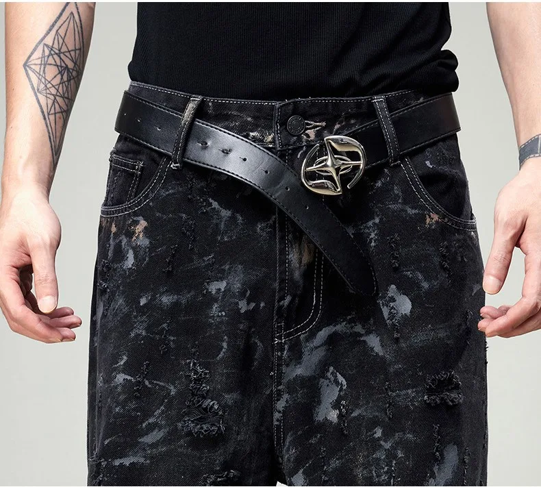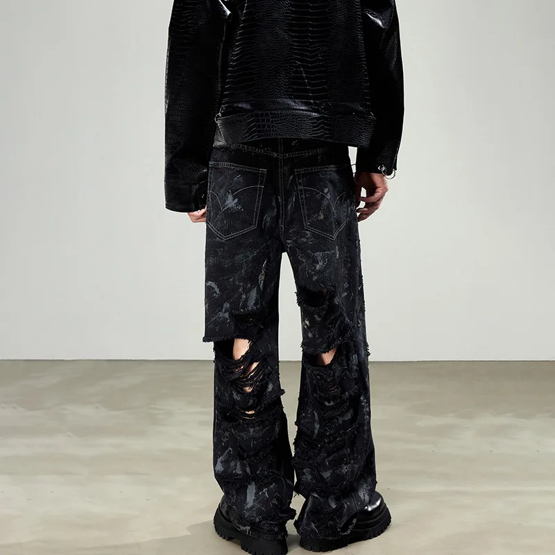Damaged Big Hole Printed Destory Jeans Trousers for Men Streetwear