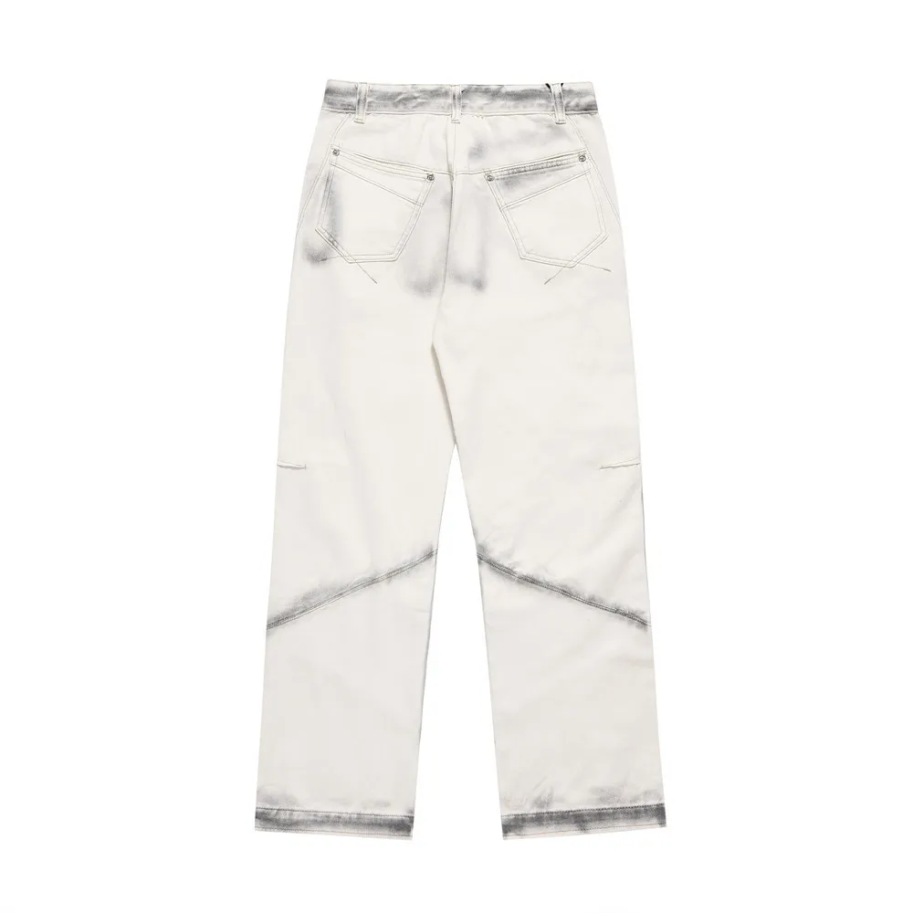 Damaged Distressed Splice Ink Streetwear Baggy Fashion Quality Mens Designer Jeans