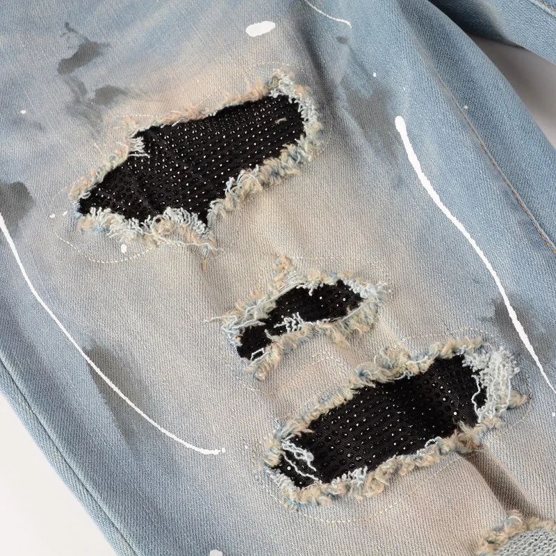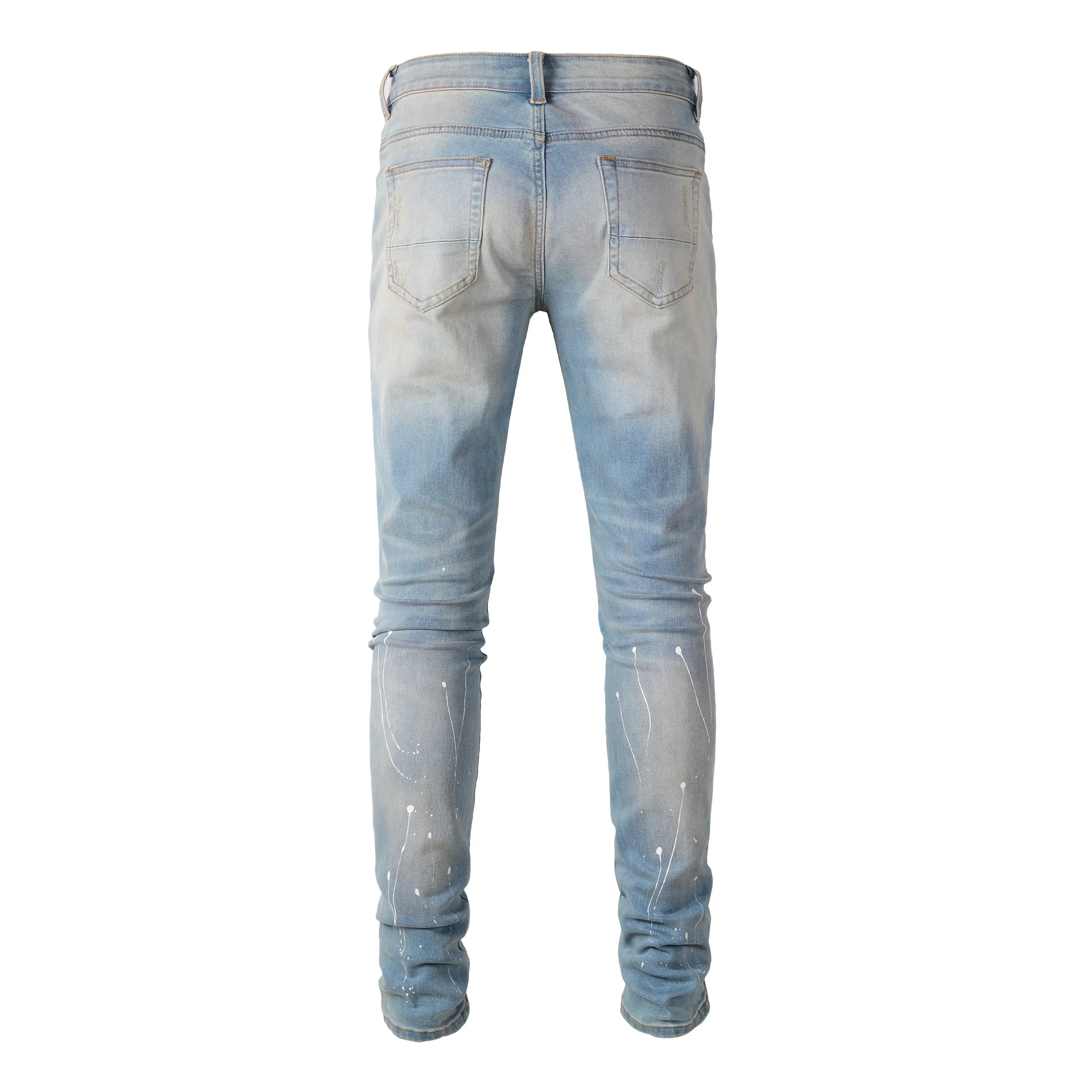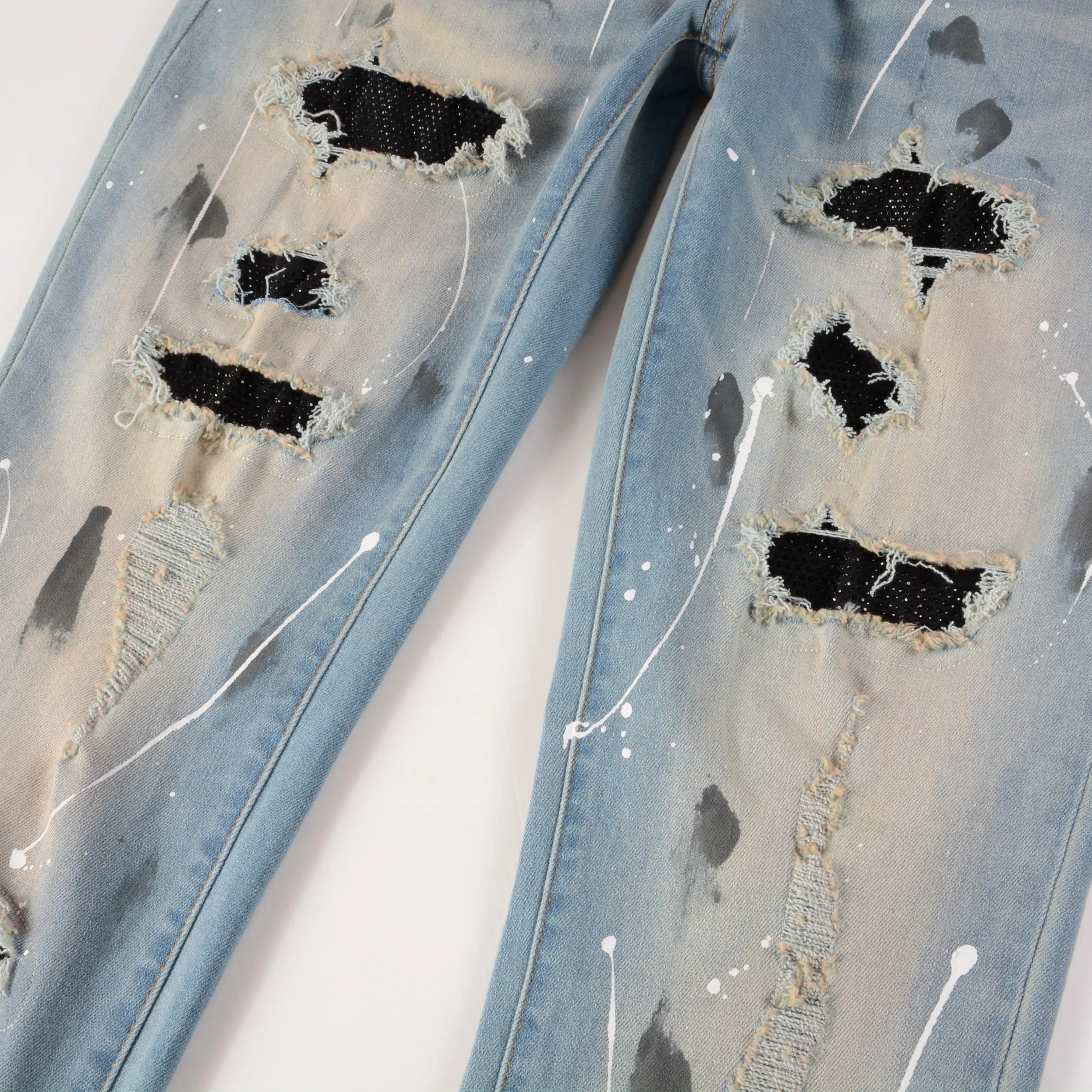 Damaged Paint Skinny Jeans Patch Jeans for Men Streetwear Jeans