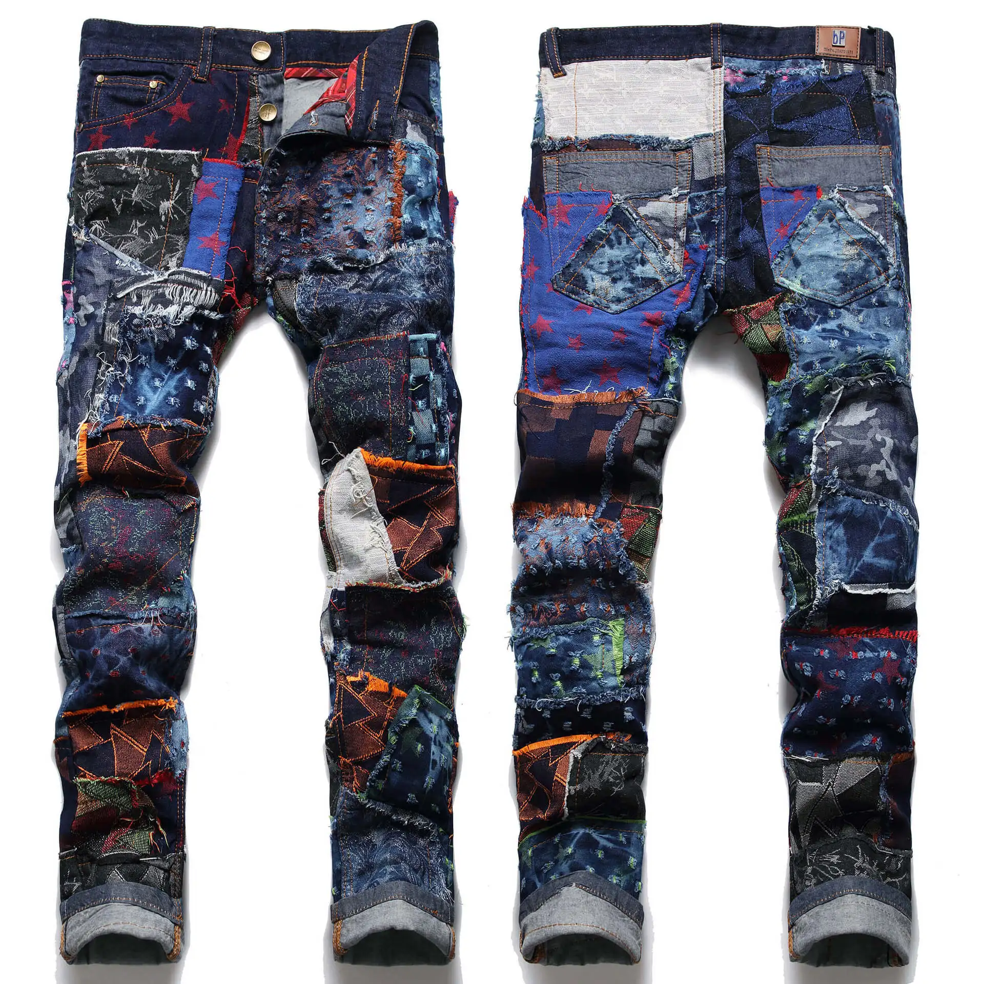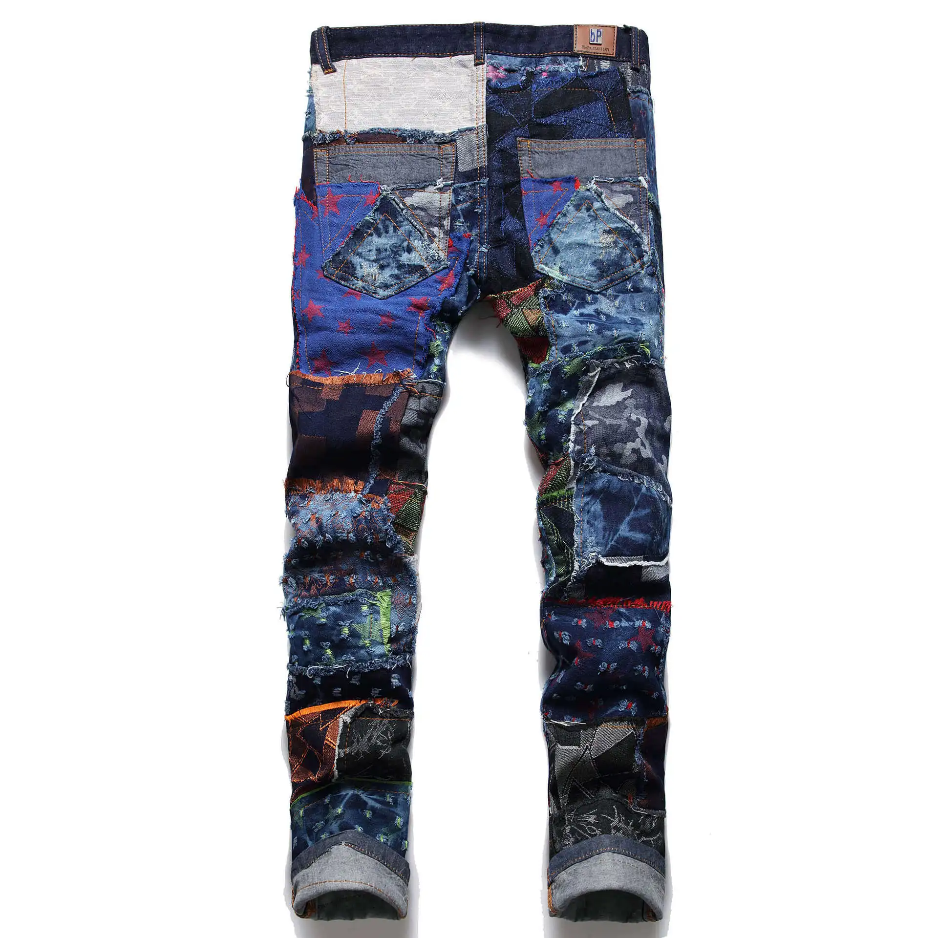 Denim Baggy Distressed Streetwear Ripped Mens Embroidery Jeans
