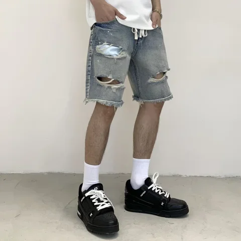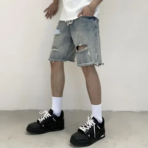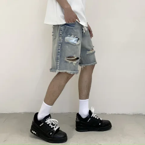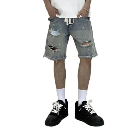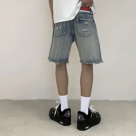 Denim High Quality Heavy Washed Denim Vintage Shorts Designer Fashion Jeans