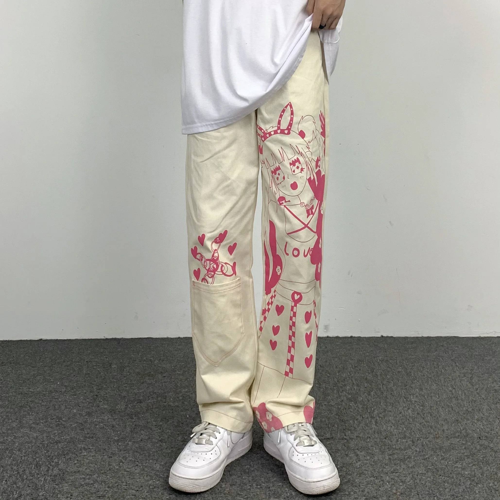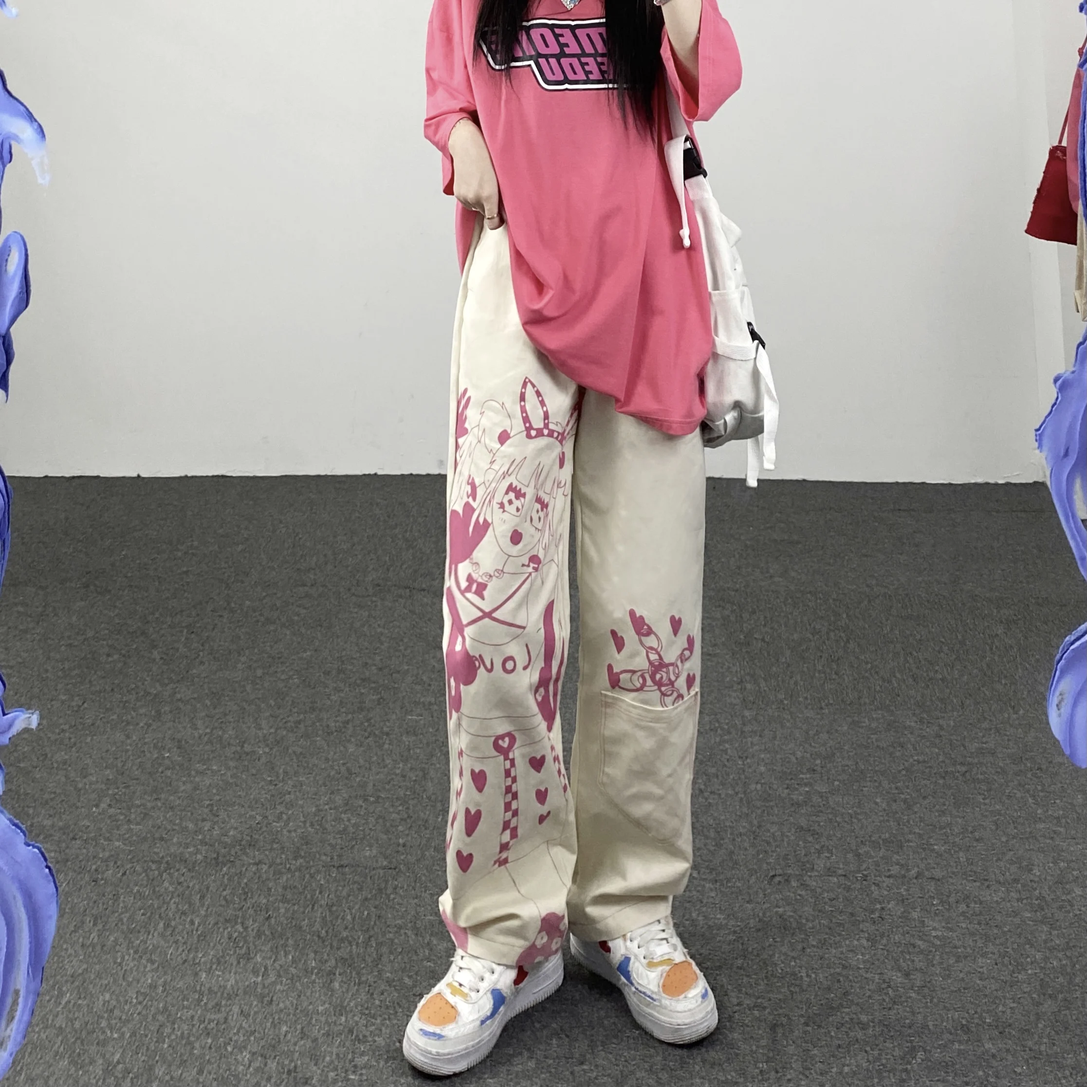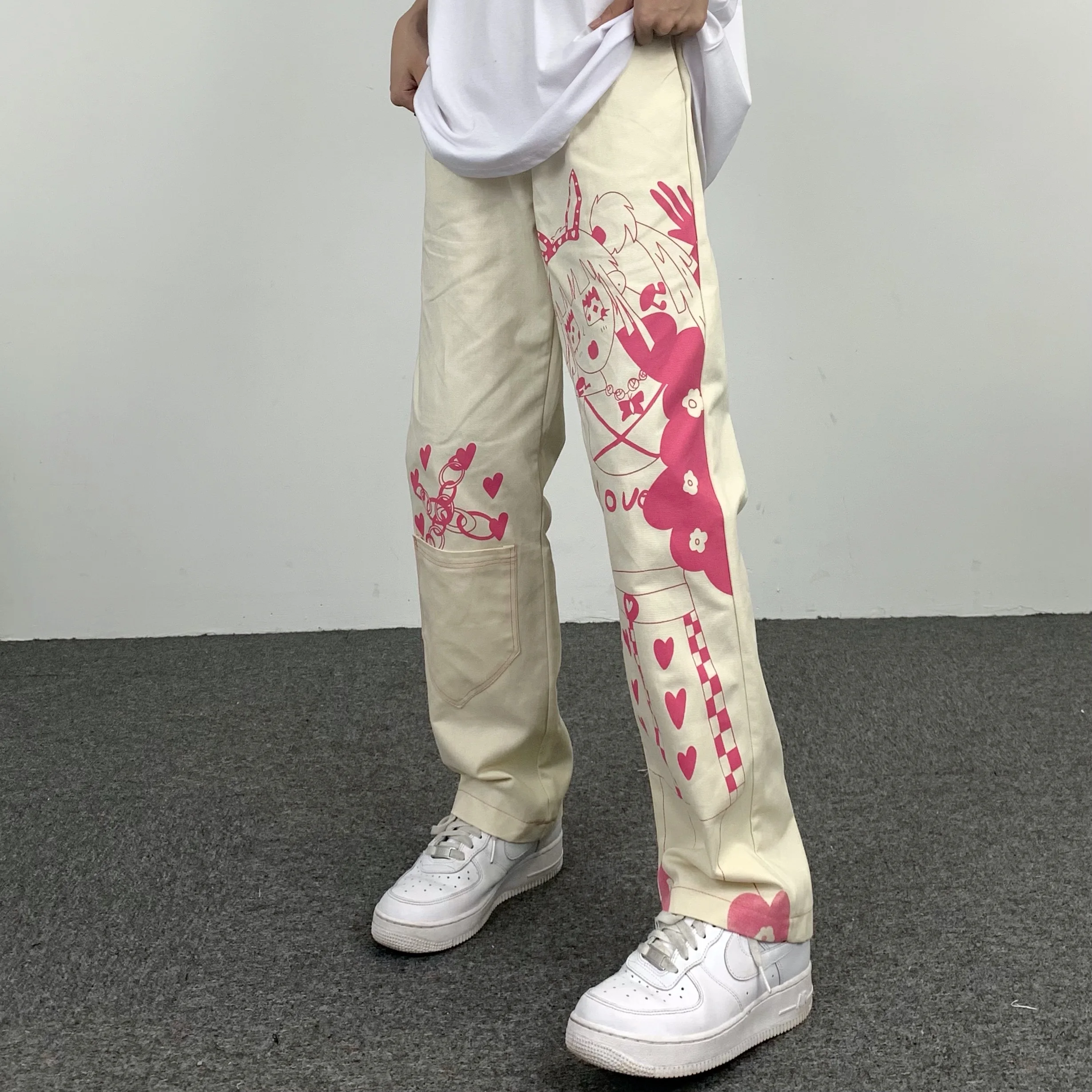 Fall High-waisted Casual Pants Jeans Chinos Cartoon Printed Loose Jeans for Women Pants 100% Cotton